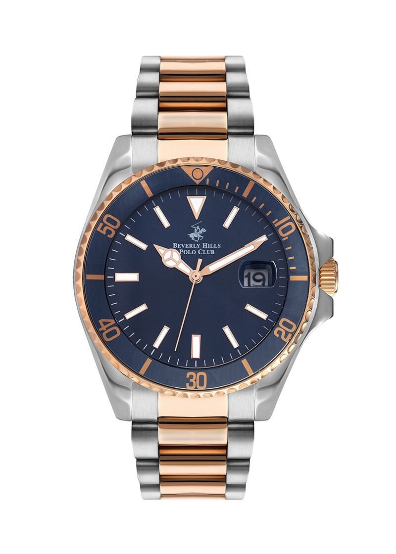 Beverly Hills Polo Club Çift Renk Erkek Kol Saati | 43,5 mm Çelik Kasa, Çelik Kordon, Lacivert Kadran