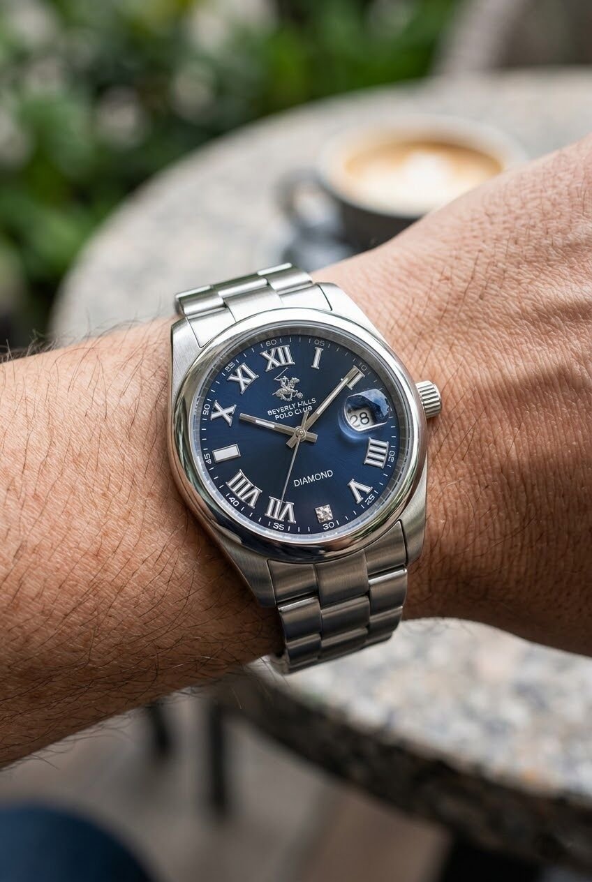 Beverly Hills Polo Club erkek kol saati şık detayları ve premium tasarım çizgisiyle dikkat çeken özel modellerden biridir. Lacivert kadranı ve gümüş tonlu çelik kasa-kordon uyumu ile klasik ve modern tarzı bir arada sunar. 6 yönünde yer alan gerçek pırlanta taşı sayesinde modele zarif ve değerli bir dokunuş kazandırılmıştır. Beverly Hills Polo Club erkek kol saati arayanlar için hem günlük kullanımda hem de özel günlerde tercih edilebilecek prestijli bir seçenektir.