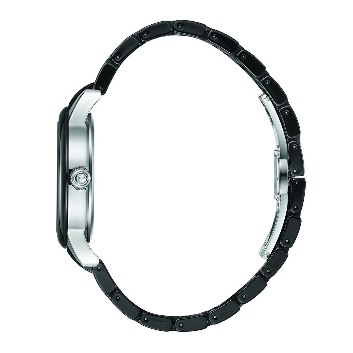 Siyah seramik bezel ve kordonun parlak dokusu, saatin modern ve güçlü karakterini öne çıkarır. Sedef efektli kadran, ışığa göre ton değiştirerek zarif bir derinlik sunar.
