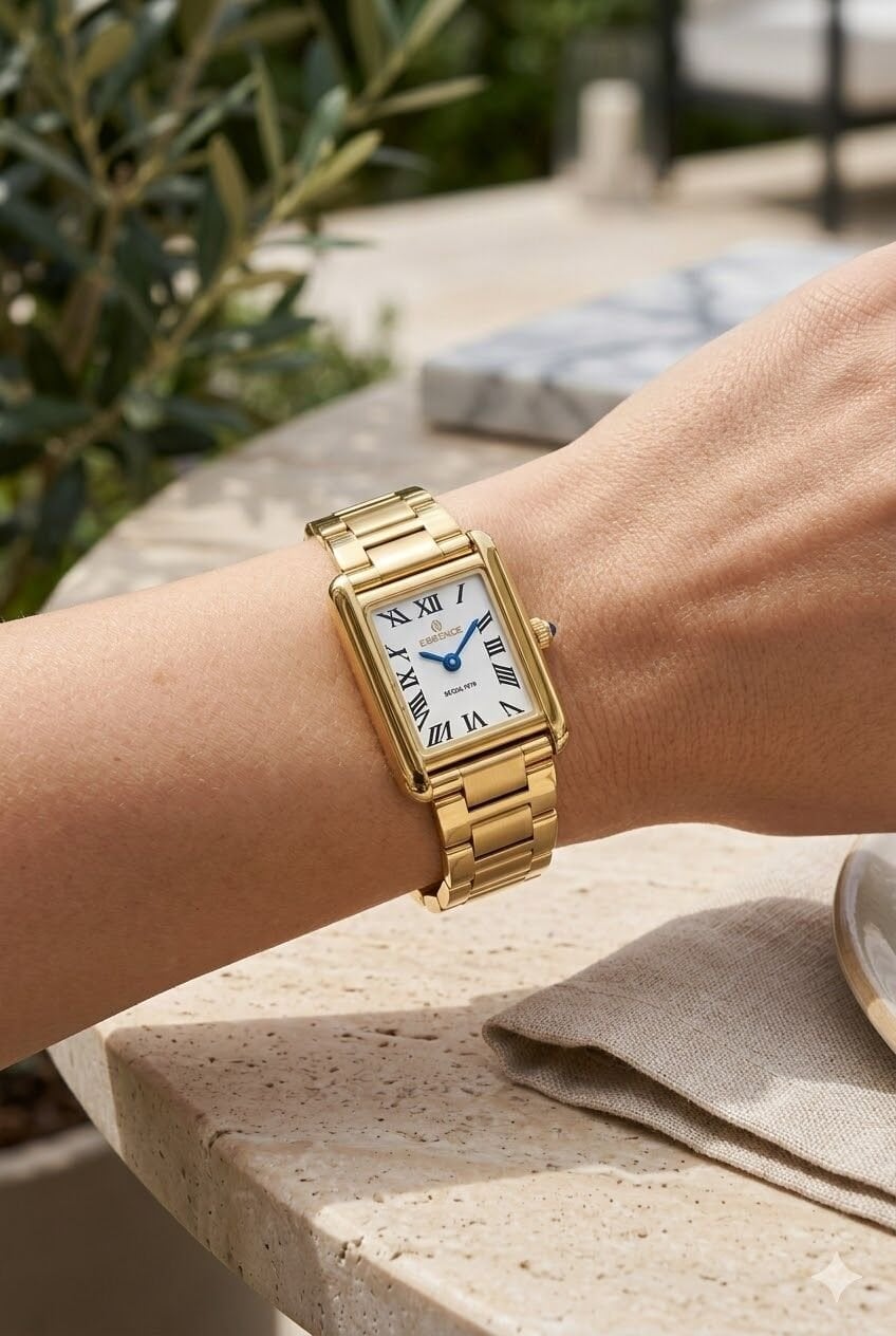 Essence kadın kol saati gold tonlu kasa ve kordon yapısı ile zarif bir görünüm sunar. Dikdörtgen kasa formu ve beyaz kadran detayı modele klasik ve şık bir karakter kazandırır. Günlük kombinlerde rahatlıkla kullanılabilen bu model, özel gün stilinde de dikkat çekici bir tamamlayıcı olarak öne çıkar.