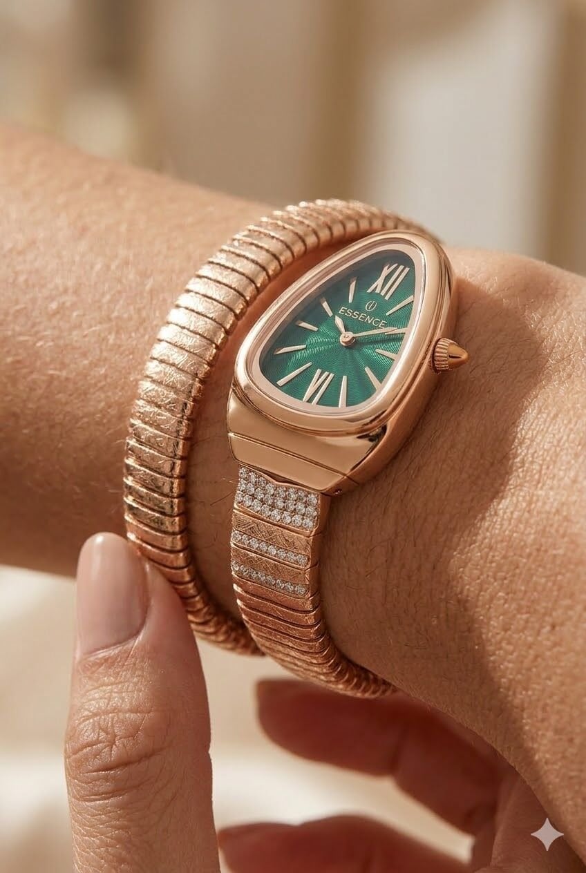 Essence kadın kol saati geometrik kasa yapısı, rose gold tonları ve yeşil kadran detayıyla dikkat çeker. Zarif tasarım çizgileri sayesinde günlük kombinlerde rahatlıkla kullanılabilir. Essence kadın kol saati, şık görünümünün yanında modern ve feminen bir stil tamamlayıcısı olarak öne çıkar.Kasa & Cam Yapısı