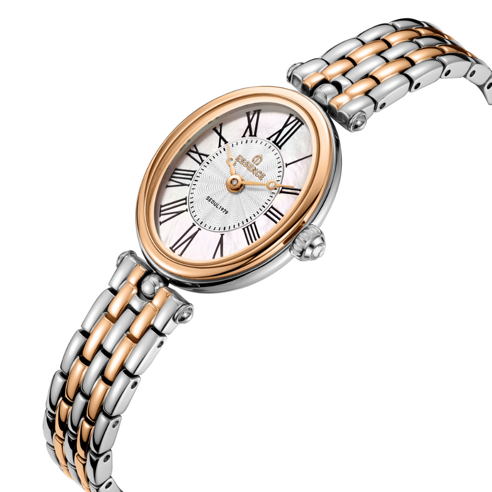 Essence Kadın Kol Saati | 22mm Çelik Kasa, Silver Rose Gold Çelik Kordon, Beyaz Kadran