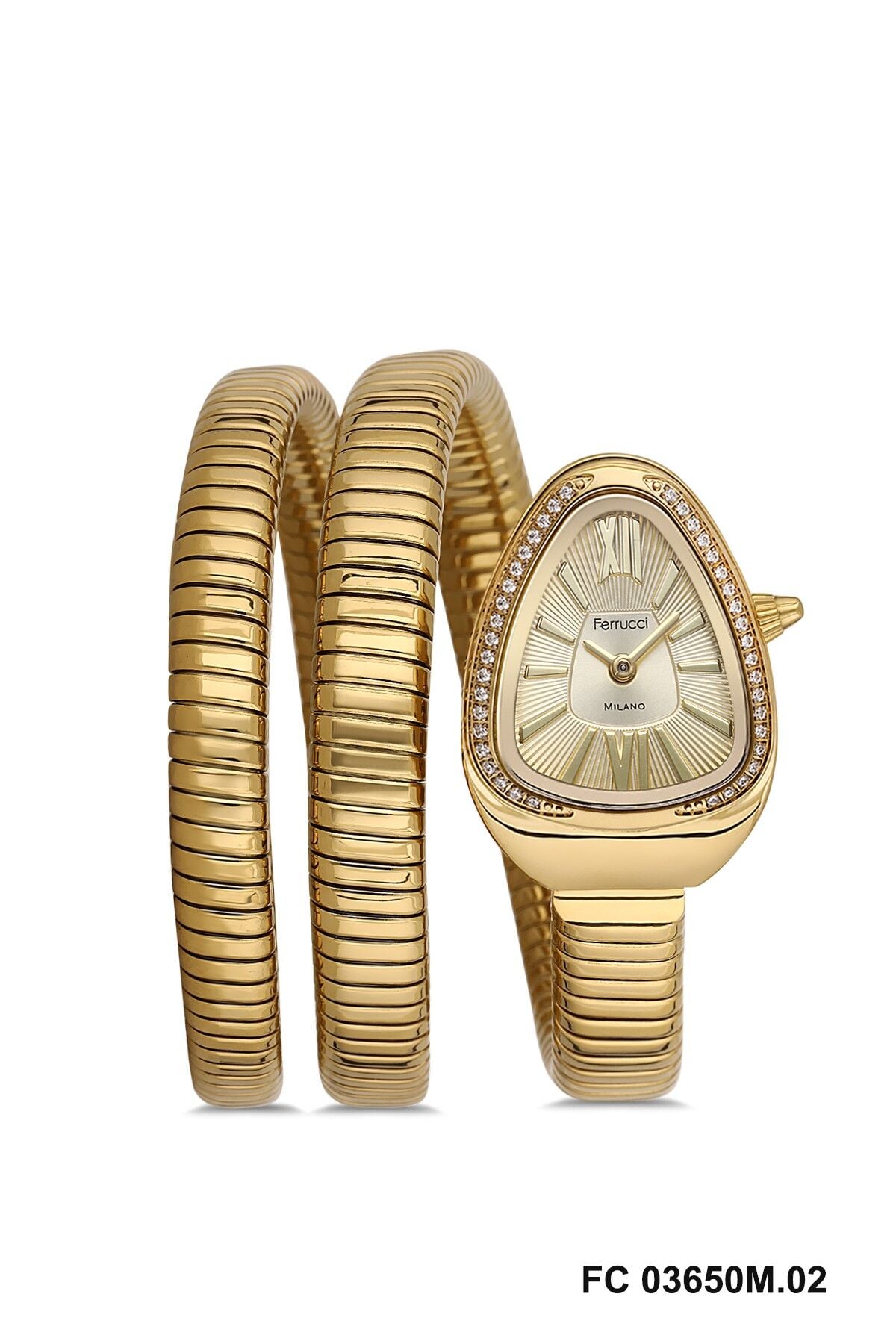 Altın renkli metal kordon saatin genel tasarımını tamamlayan zarif ve dikkat çekici bir görünüm sunar. Esnek yapısı sayesinde Ferrucci kadın kol saati gün boyu konforlu kullanım sağlar.