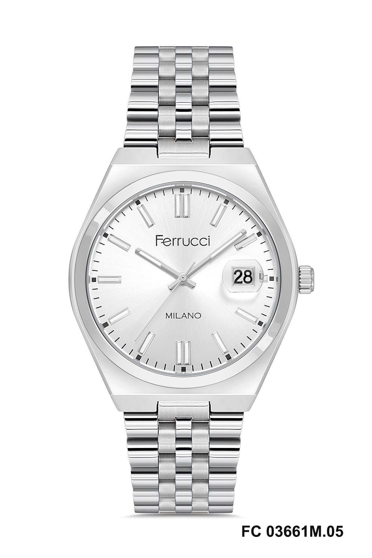Gümüş renkli metal kordon saatin genel tasarımını tamamlayan modern bir görünüm sunar. Bileğe uyum sağlayan yapısı sayesinde Ferrucci erkek kol saati gün boyu konforlu kullanım sağlar.