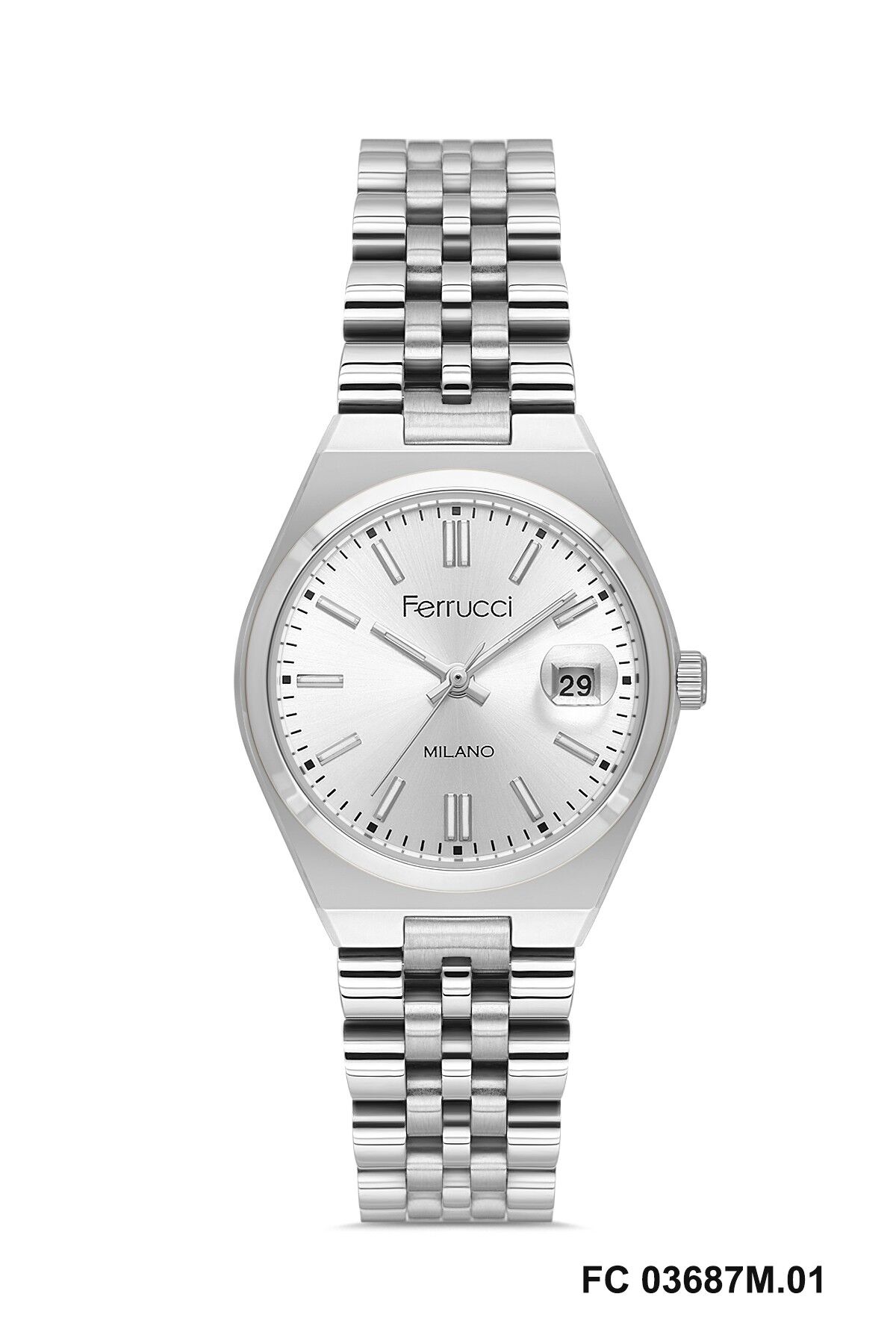 Ferrucci Modern ve Zarif Kadın Kol Saati | 30 mm Çelik Kasa, Gümüş Metal Kordon, Gümüş Kadran