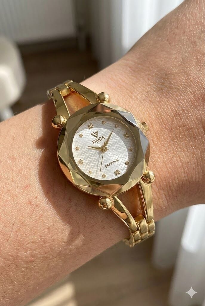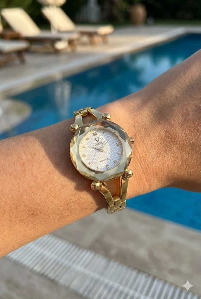 Fiesta F600605 kadın kol saati, 32 mm paslanmaz çelik kasası ve zarif altın tonlu tasarımıyla feminen şıklığı ön plana çıkarır. Işıltılı kadran yapısı ve modern kasa formu sayesinde hem günlük kombinlerde hem de özel davetlerde stilinizi tamamlayan güçlü bir aksesuar olarak öne çıkar.