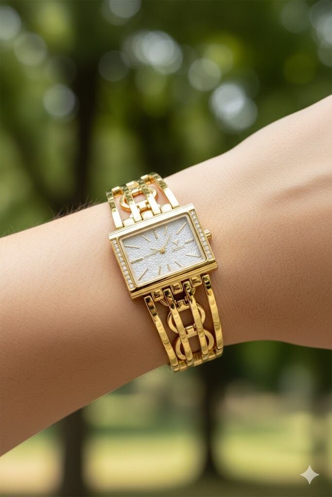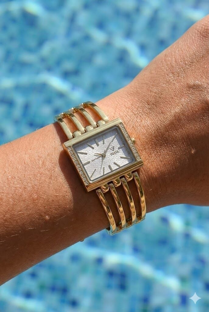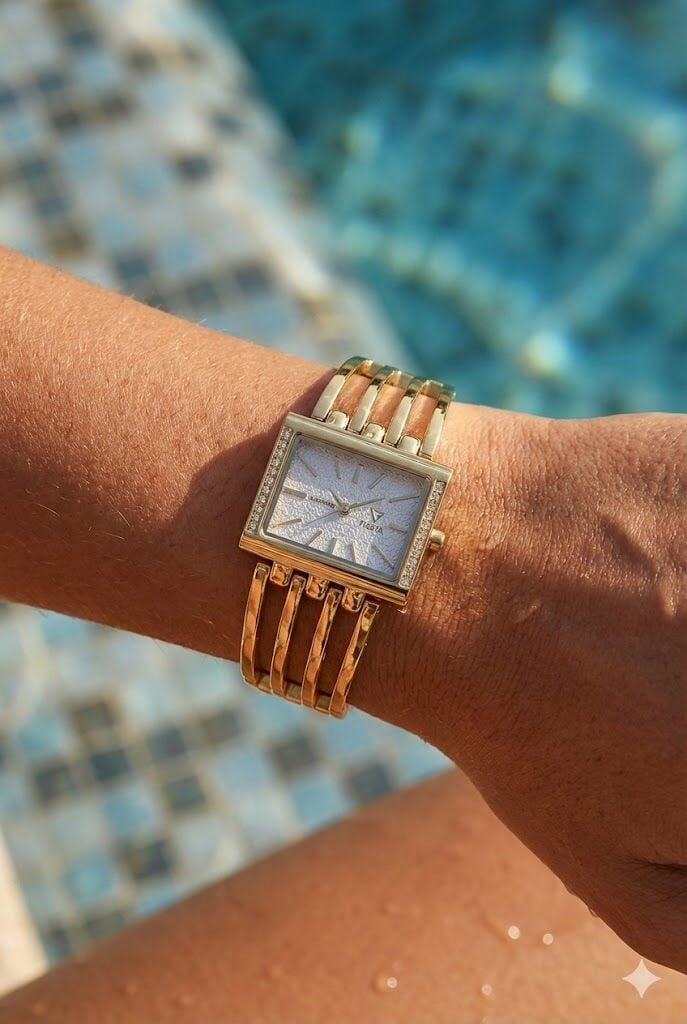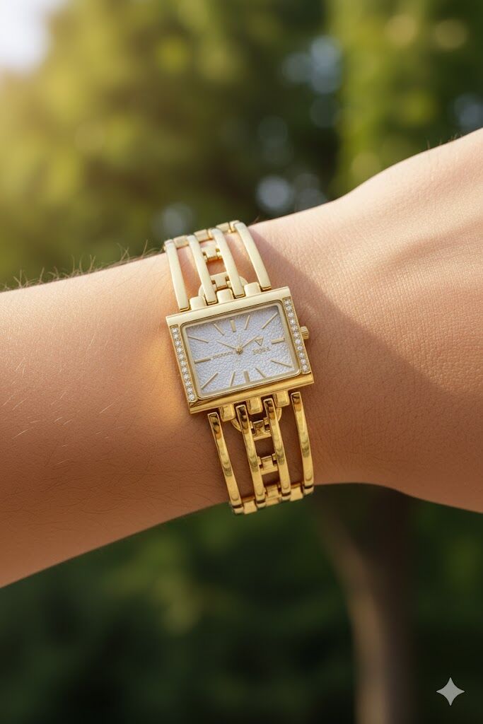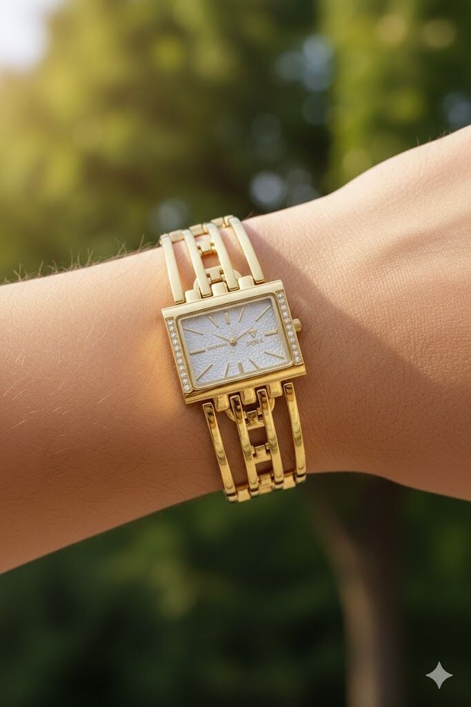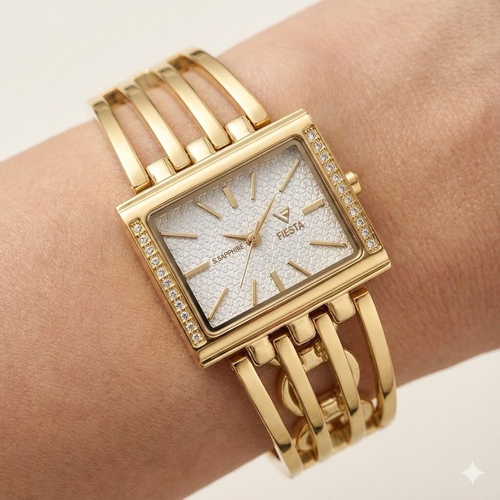 Fiesta kadın kol saati, kare kasa formu ve zarif altın tonlu tasarımıyla klasik şıklığı modern detaylarla buluşturur. Taş detaylı kadranı ve estetik bilezik yapısı sayesinde hem günlük kullanımda hem de özel davetlerde stilinizi tamamlayan güçlü bir aksesuardır.