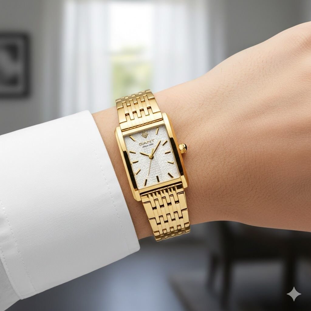 Gant G173002 Kadın Kol Saati – Dikdörtgen Kasa – Altın Renk Çelik Kordon – 24 mm – Zarif ve Şık Tasarım