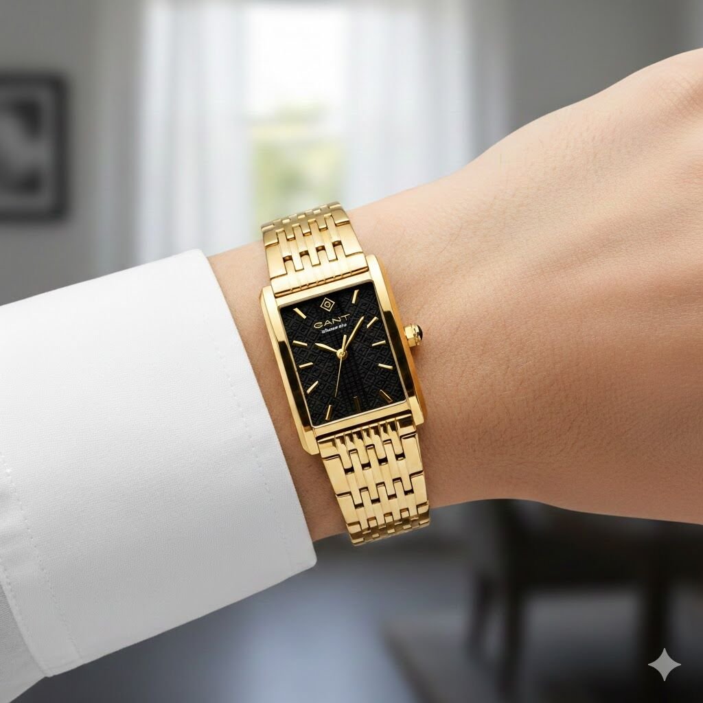 Gant G173003 Kadın Kol Saati – Dikdörtgen Kasa – Altın Renk Çelik Kordon – Siyah Kadran – Zarif ve Şık Tasarım