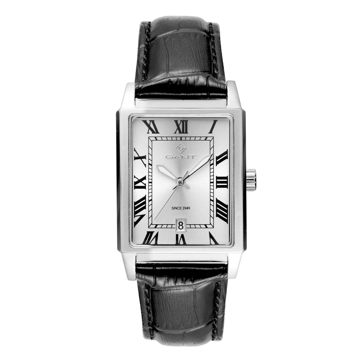 Gant Silver Dikdörtgen Kasa Erkek Kol Saati | 28.5 mm Çelik Kasa, Siyah Deri Kordon, Gümüş Kadran