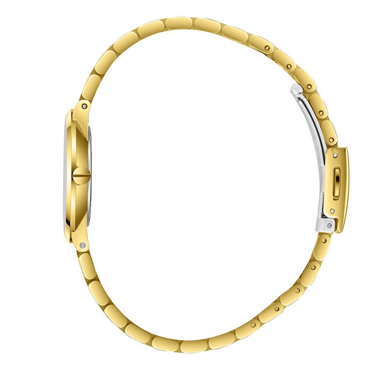 Paslanmaz çelik kasa ve kordon yapısı uzun ömürlü ve dayanıklı kullanım sağlarken, altın renk tasarımı saatinize prestijli bir görünüm kazandırır. Sade ve şık kadran tasarımı günlük kullanım ve özel gün kombinleri ile mükemmel uyum sağlar.