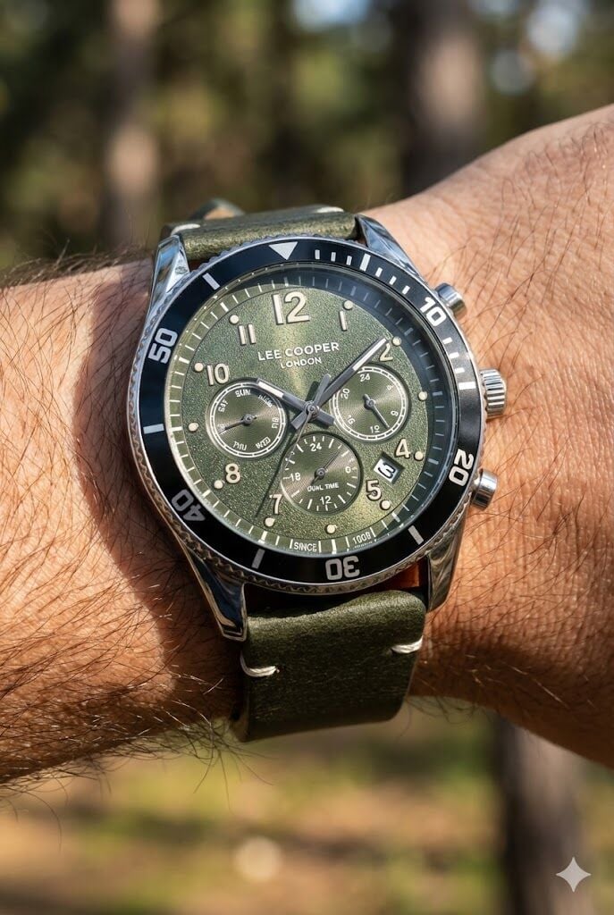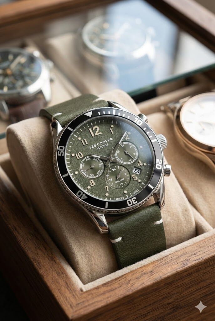 Lee Cooper LC08260.675 erkek kol saati; haki tonlu kadranı ve uyumlu deri kordon tasarımıyla doğadan ilham alan güçlü ve maskülen bir stil sunar. Multifonksiyon göstergeleri sayesinde günlük kullanımda hem şıklık hem de pratiklik sağlar.