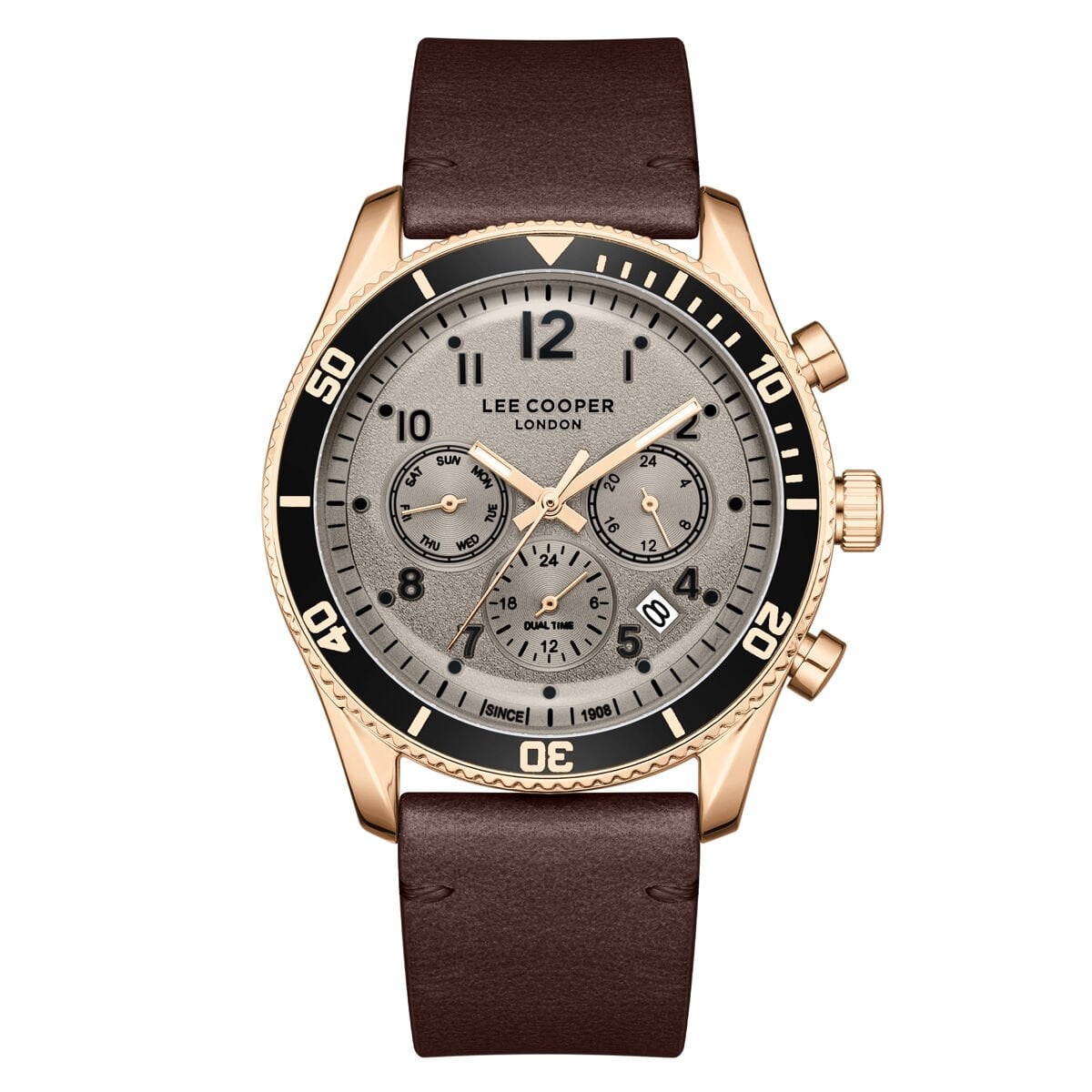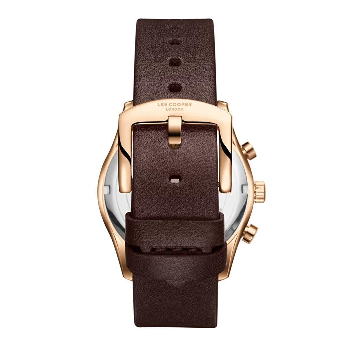 Lee Cooper 41mm Rose Gold Kasa, Kahverengi Deri Kordon, Multifonksiyon Erkek Kol Saati