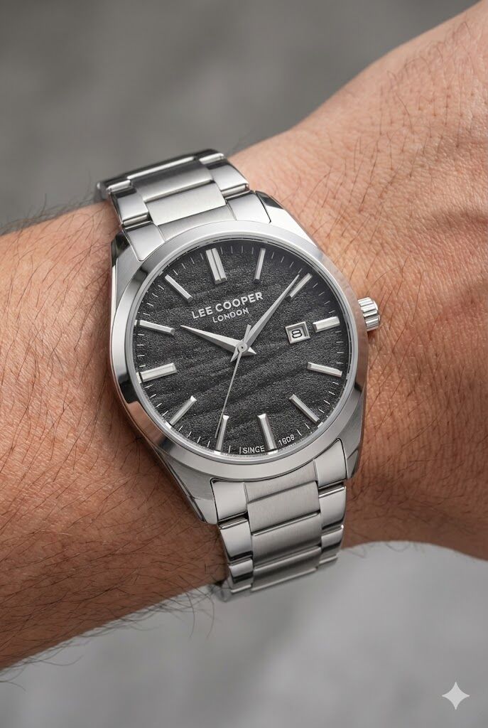 Lee Cooper 41mm, Siyah Dokulu Kadran, Çelik Kordon, Modern ve Şık Erkek Kol Saati