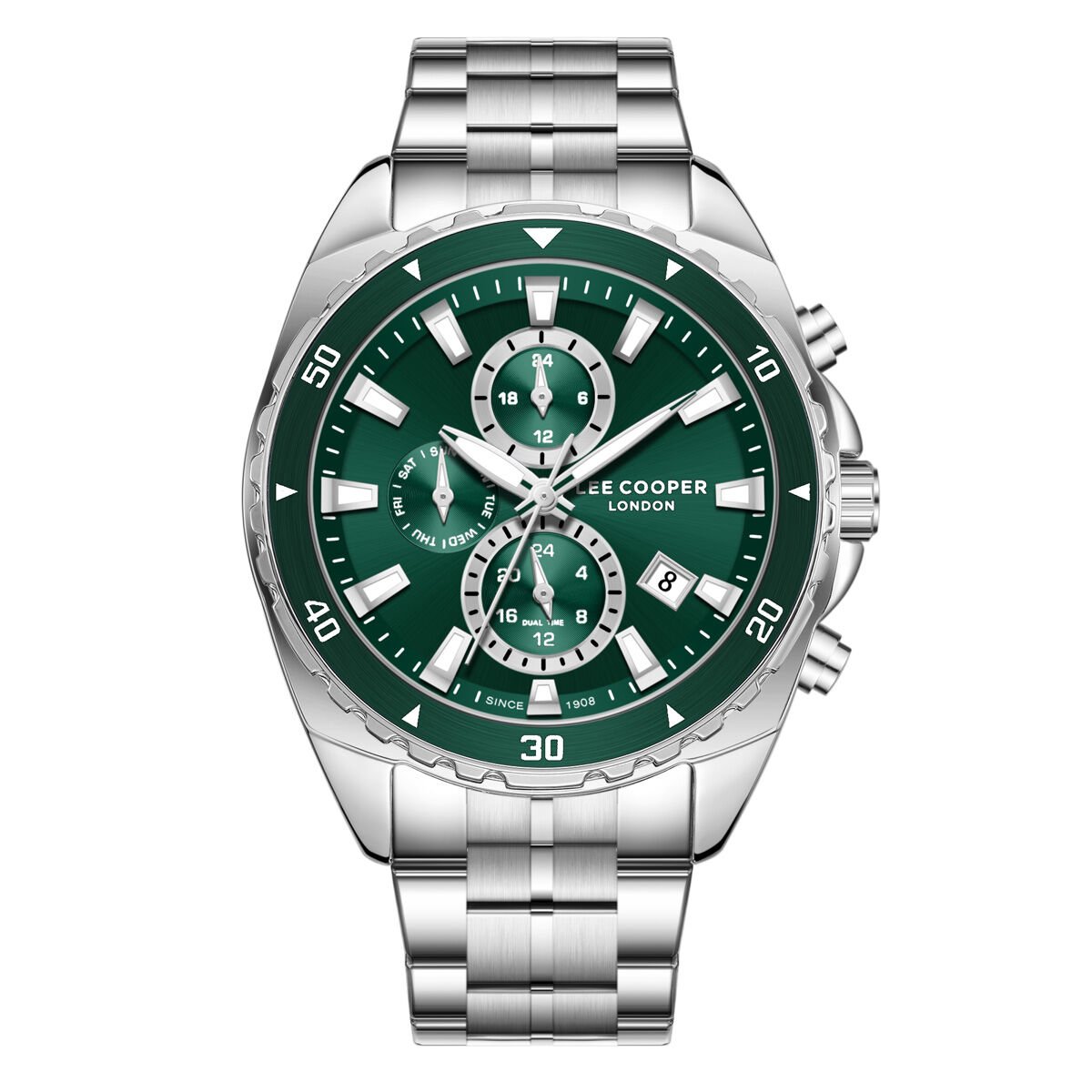 Lee Cooper 43mm Çelik Kasa, Spor Yeşil Kadran, Gümüş Renk Çelik Kordon Erkek Kol Saati