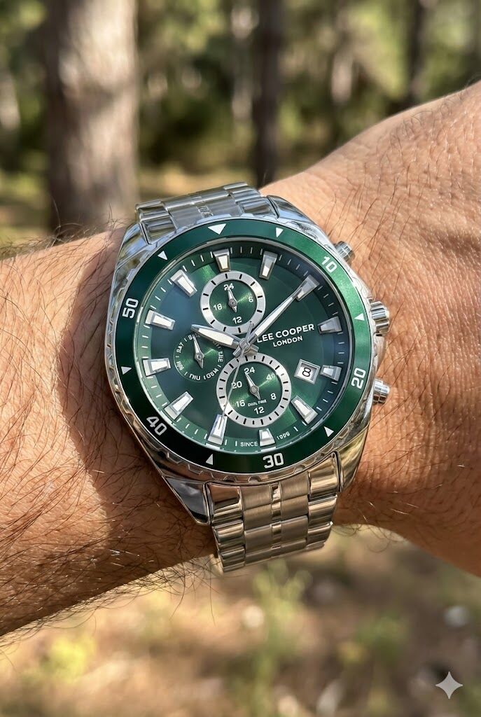 Lee Cooper LC08217.370 erkek kol saati; güçlü kasa tasarımı ve dikkat çekici yeşil kadranı ile sportif ve dinamik bir stil sunar. Çoklu alt göstergeleri ve detaylı bezel yapısı sayesinde modern erkek kombinlerine iddialı bir dokunuş katar.