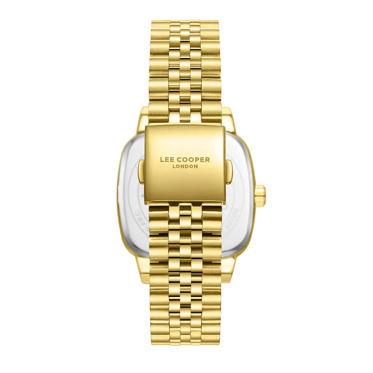 Lee Cooper Altın Kare Kasa Erkek Kol Saati | 40 mm Çelik Kasa, Altın Çelik Kordon, Füme Kadran
