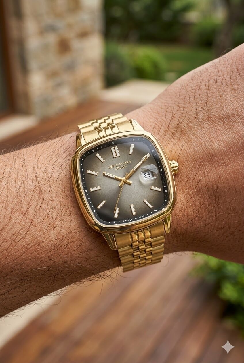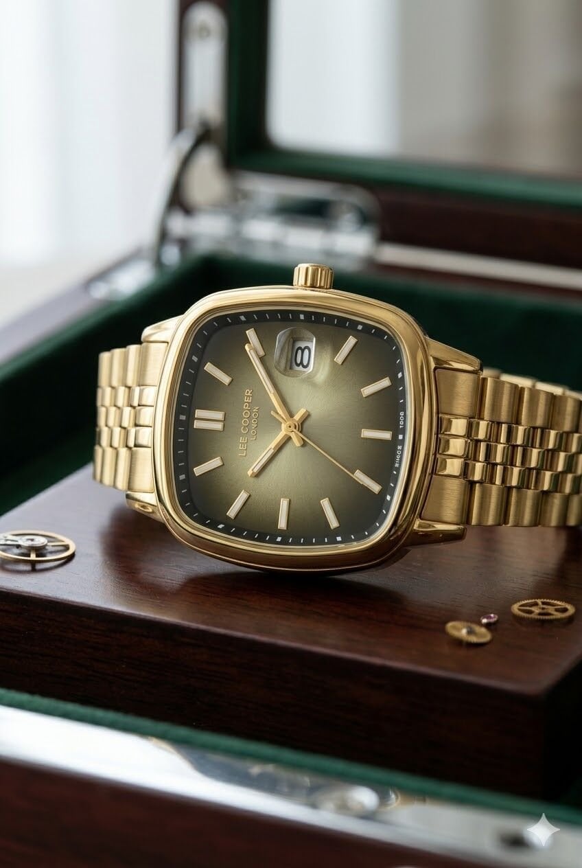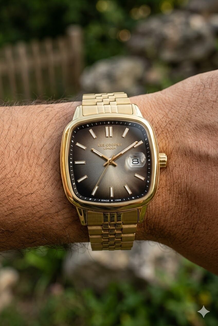 Lee Cooper erkek kol saati altın tonlu kasa ve kordon yapısı ile güçlü ve modern bir görünüm sunar. Kare kasa formu ve füme kadran detayı modele karakterli ve dikkat çekici bir stil kazandırır. Günlük kombinlerde rahatlıkla kullanılabilen bu model, klasik ve modern tarzı bir araya getiren şık bir tamamlayıcı olarak öne çıkar.
