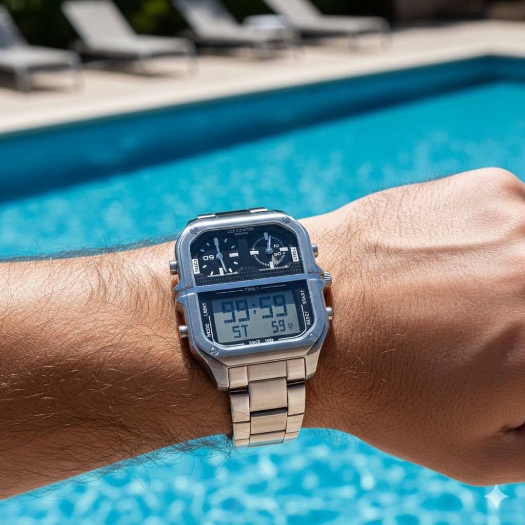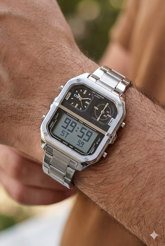 Lee Cooper Anlog & Dijital Erkek Kol Saati | 50 mm Çelik Kasa, Çelik Kordon, 5 ATM Su Geçirmez
