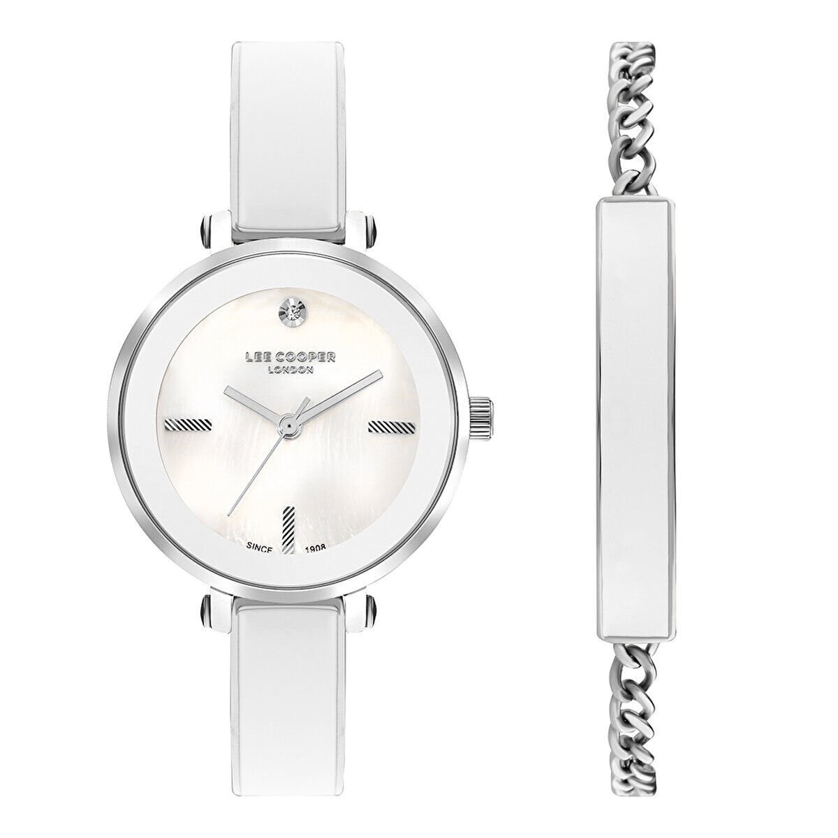 Lee Cooper Beyaz Renk Kadın Kol Saati | 32mm, Beyaz Kadranlı, Çelik Kordonlu - Bileklik Hediyeli