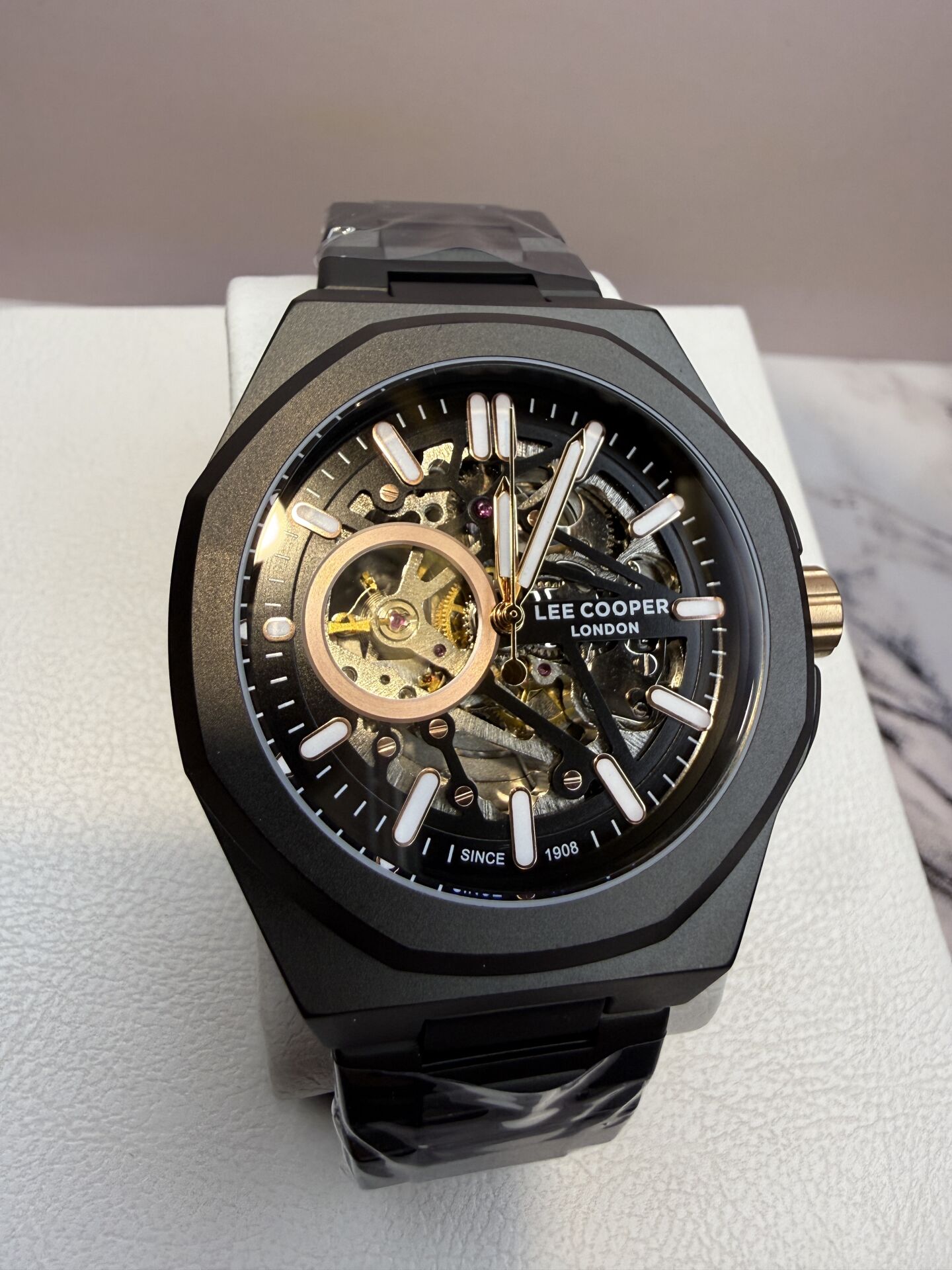 Lee Cooper erkek kol saati, modern tasarımı ve otomatik mekanizmasıyla saat tutkunlarına güçlü bir stil sunar. İskelet (skeleton) kadran yapısı sayesinde mekanizmanın hareketi izlenebilirken, siyah tonların rose detaylarla birleşimi saatin karakterini ön plana çıkarır. 42 mm paslanmaz çelik kasası ile dengeli ve konforlu bir bilek duruşu sağlar.