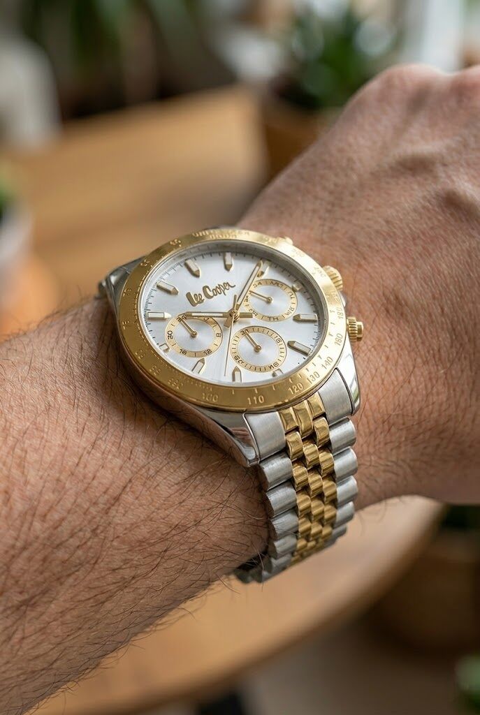 Lee Cooper erkek kol saati, güçlü kasa yapısı ve dikkat çekici detayları ile öne çıkar. Multifonksiyon göstergeleri sayesinde hem şık hem de işlevsel bir kullanım sunar. Silver ve gold tonlarının birleşimi ile klasik ve sportif tarzı bir arada sunar.