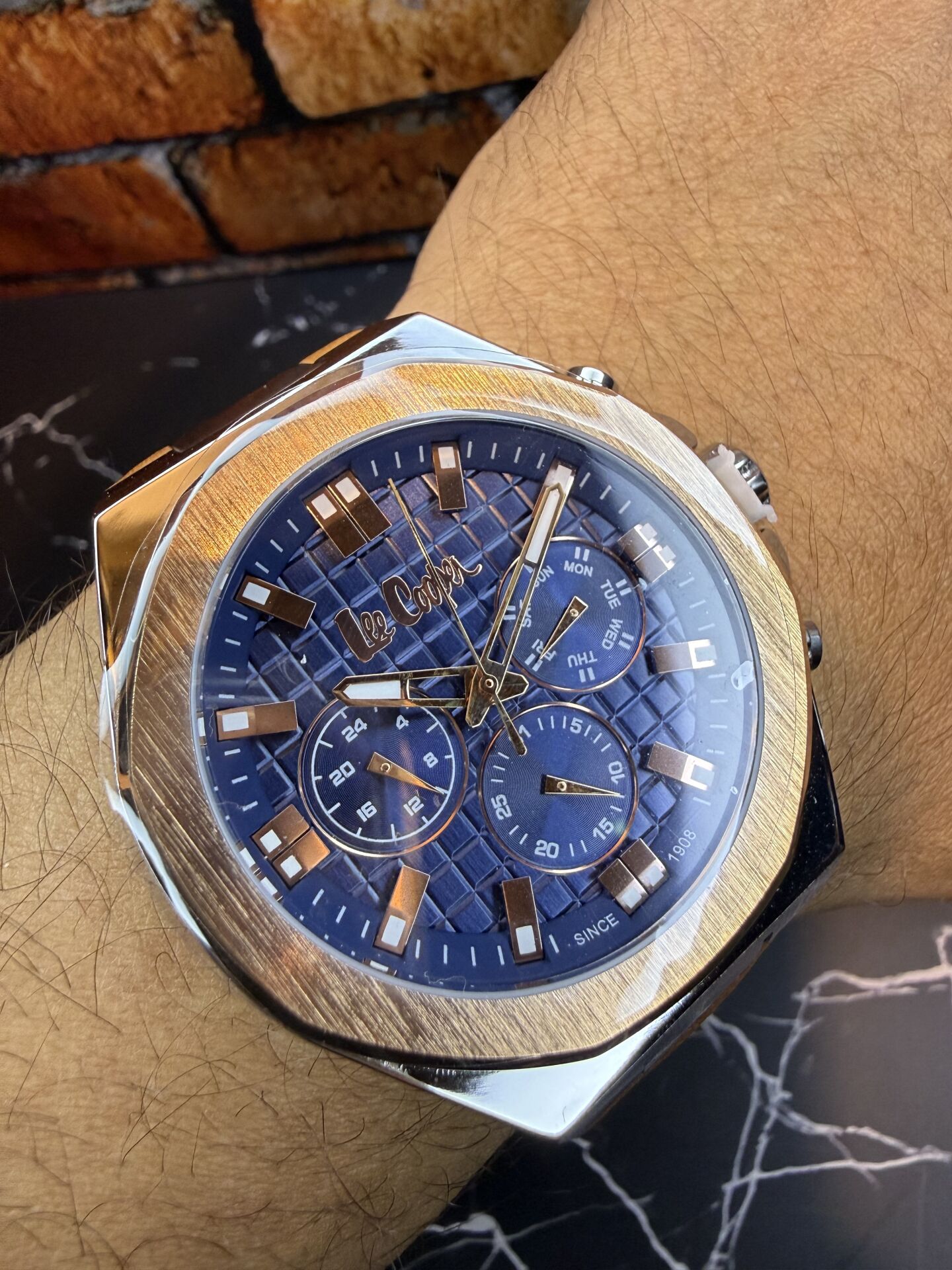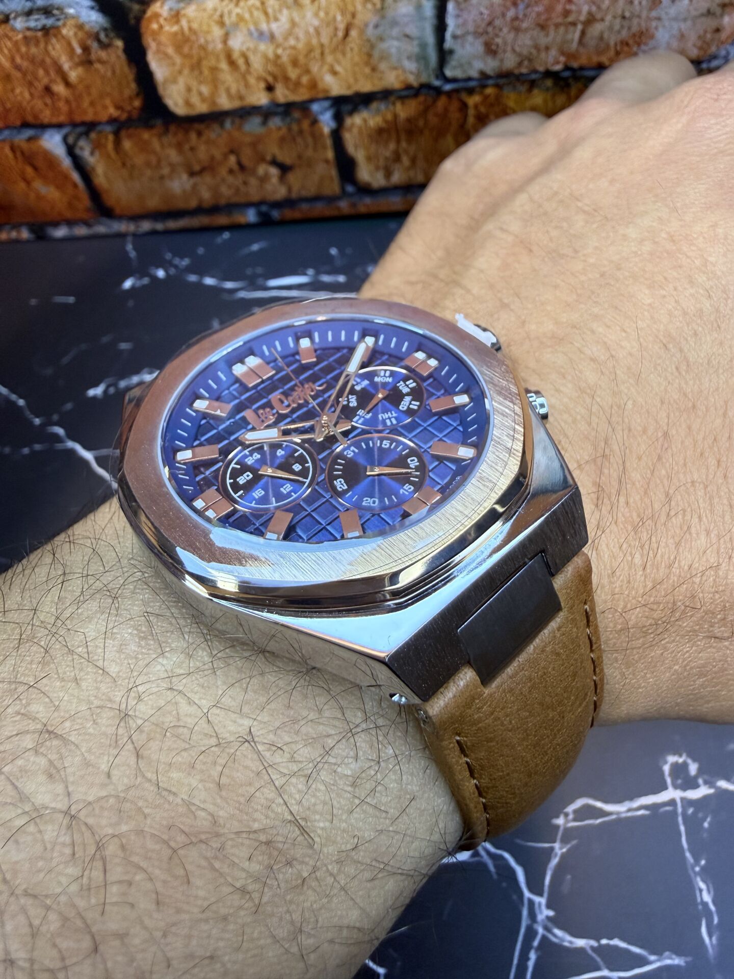Lee Cooper Erkek Kol Saati; lacivert dokulu kadranı, paslanmaz çelik kasası ve kahverengi deri kordonu ile klasik şıklığı modern detaylarla birleştirir. Çok fonksiyonlu yapısı sayesinde günlük kullanımda hem şık hem de fonksiyonel bir deneyim sunar.