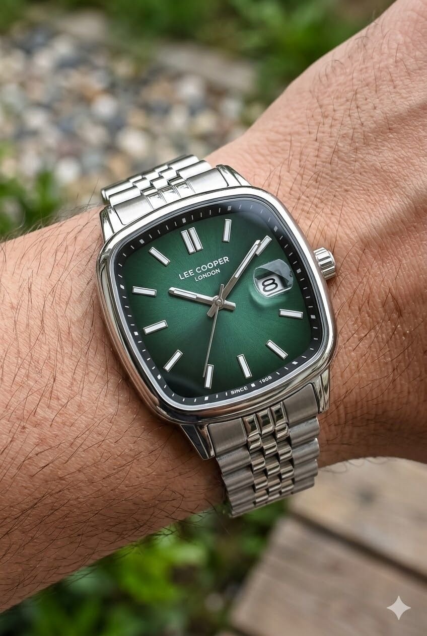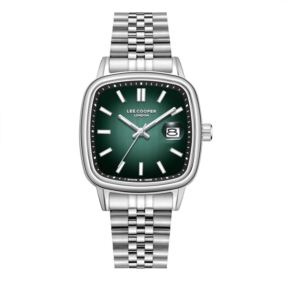 Lee Cooper Gümüş Kare Kasa Erkek Kol Saati | 40 mm Çelik Kasa, Gümüş Çelik Kordon, Yeşil Kadran