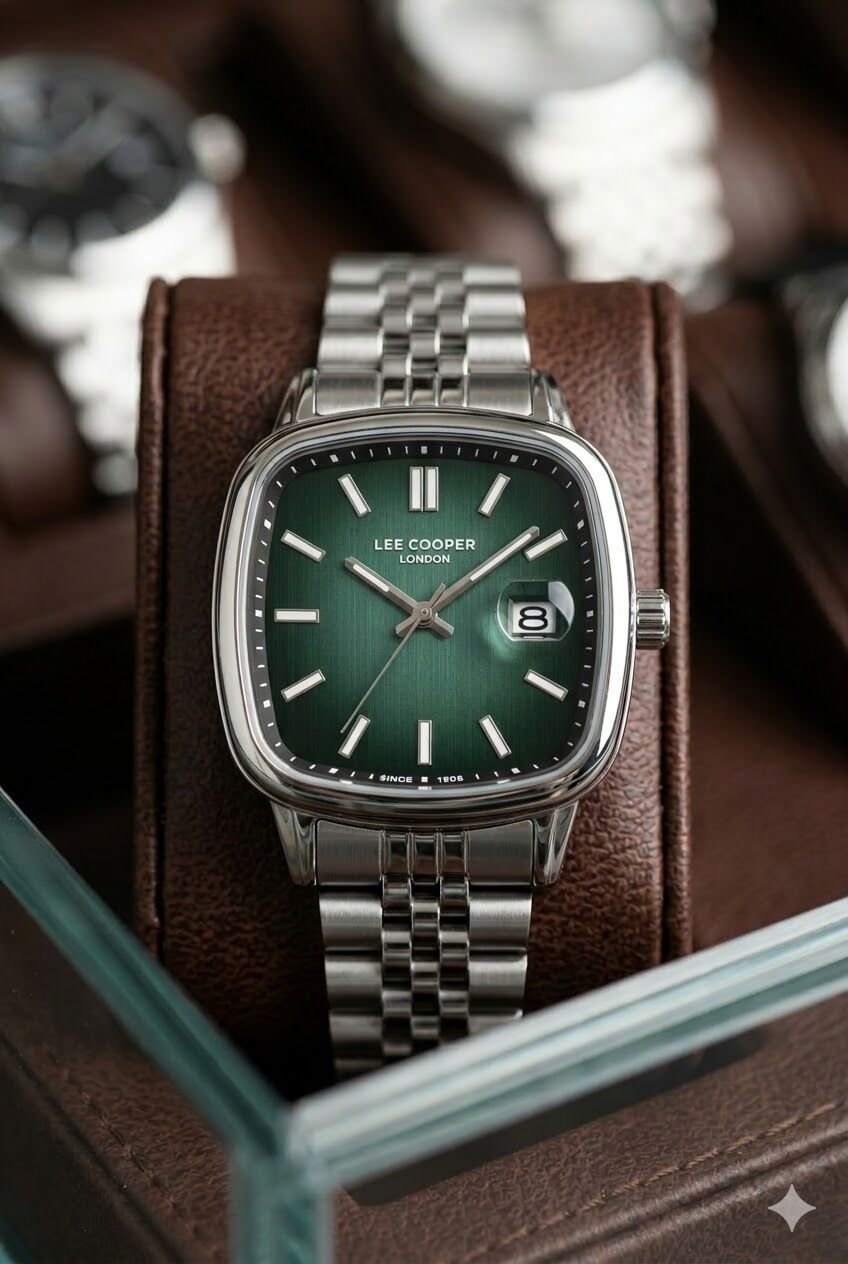 Lee Cooper erkek kol saati güçlü tasarımı ve modern detaylarıyla günlük kullanımda dikkat çeken özel bir modeldir. Gümüş tonlu kare kasa ve çelik kordon yapısı sayesinde bilekte şık ve dengeli bir duruş sunar. Lee Cooper erkek kol saati arayanlar için hem estetik hem de kullanışlı bir seçenek oluşturan bu model, yeşil kadranı ile klasik görünümü daha karakterli ve modern hale getirir. 40 mm kasa çapına sahip olan Lee Cooper erkek kol saati, güçlü ve dikkat çekici saat tercih eden kullanıcılar için ideal bir seçimdir.