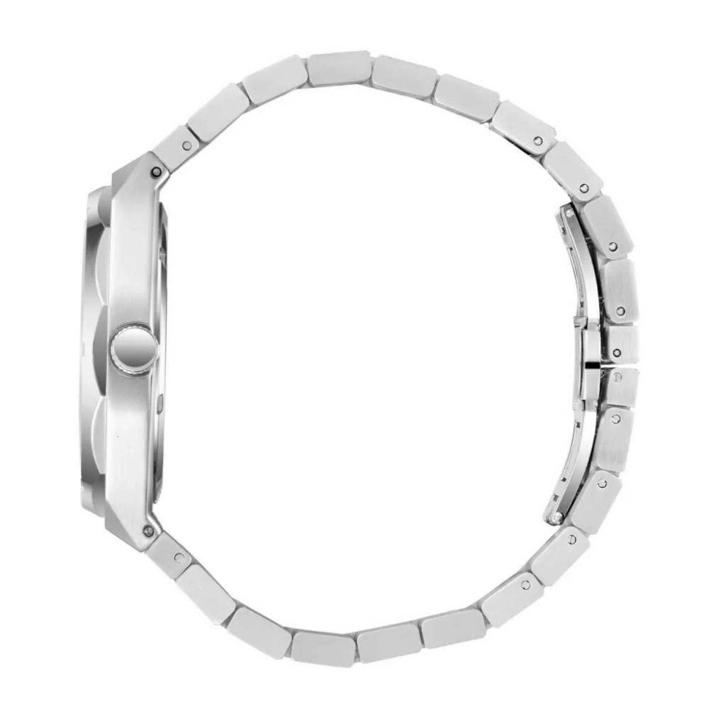 Gümüş çelik kordon sağlam ve konforlu yapısı sayesinde bileğe mükemmel uyum sağlar. Dayanıklı yapısı ile uzun süreli kullanım sunar ve şık görünümü tamamlar.