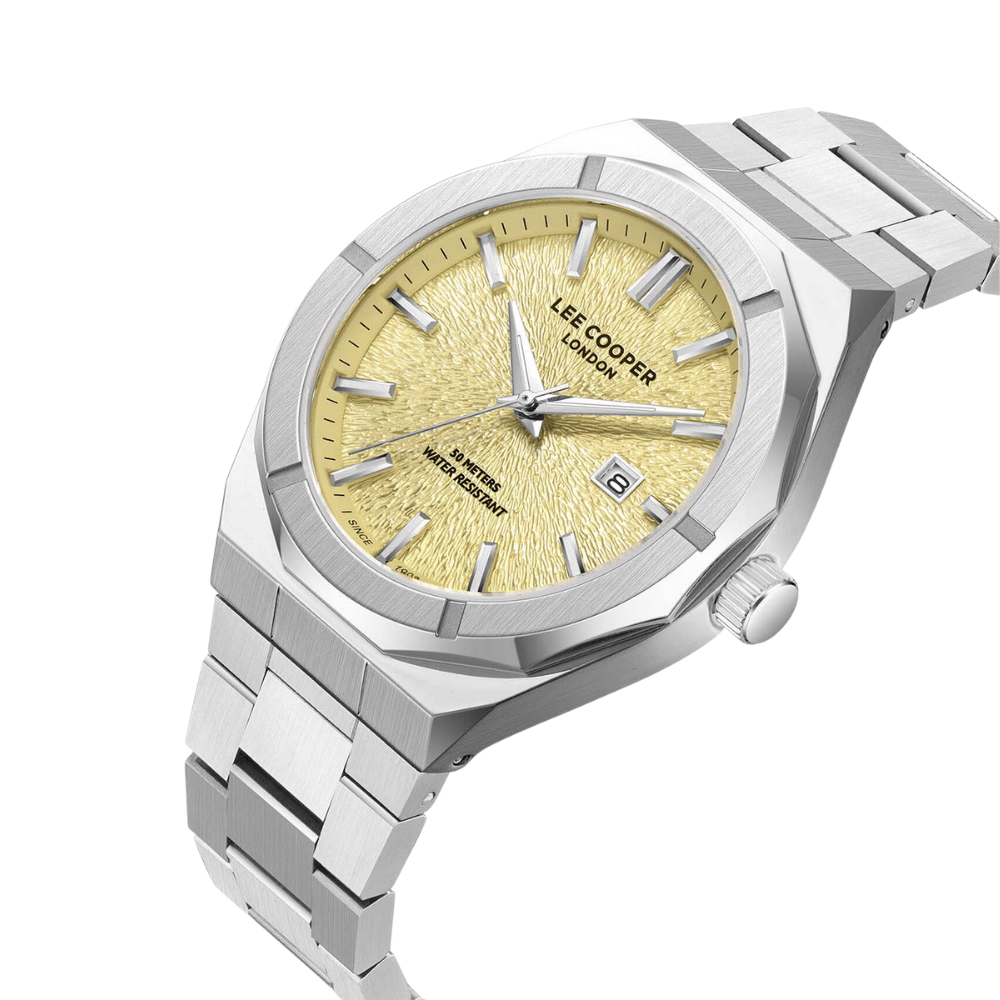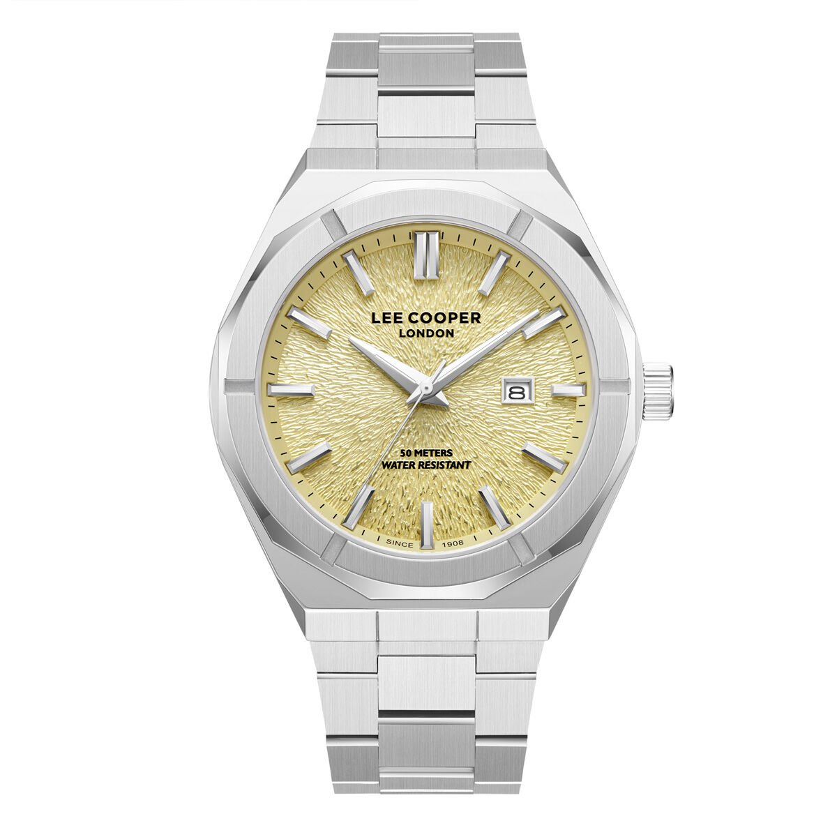 Lee Cooper Gümüş Renk Erkek Kol Saati | 45 mm Çelik Kasa, Gümüş Çelik Kordon, Altın Kadran