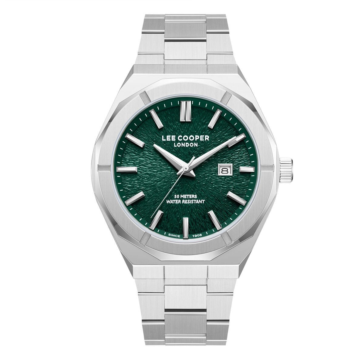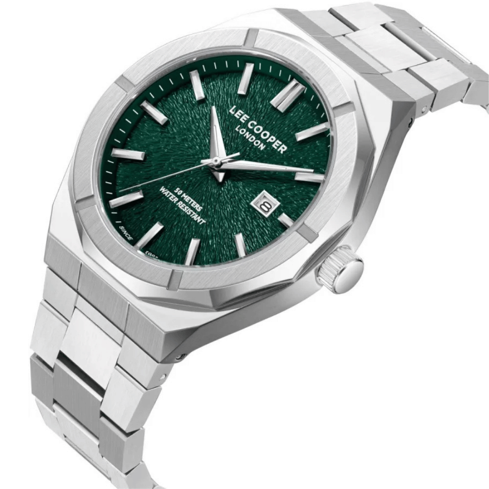 Lee Cooper Gümüş Renk Erkek Kol Saati | 45 mm Çelik Kasa, Gümüş Çelik Kordon, Yeşil Kadran