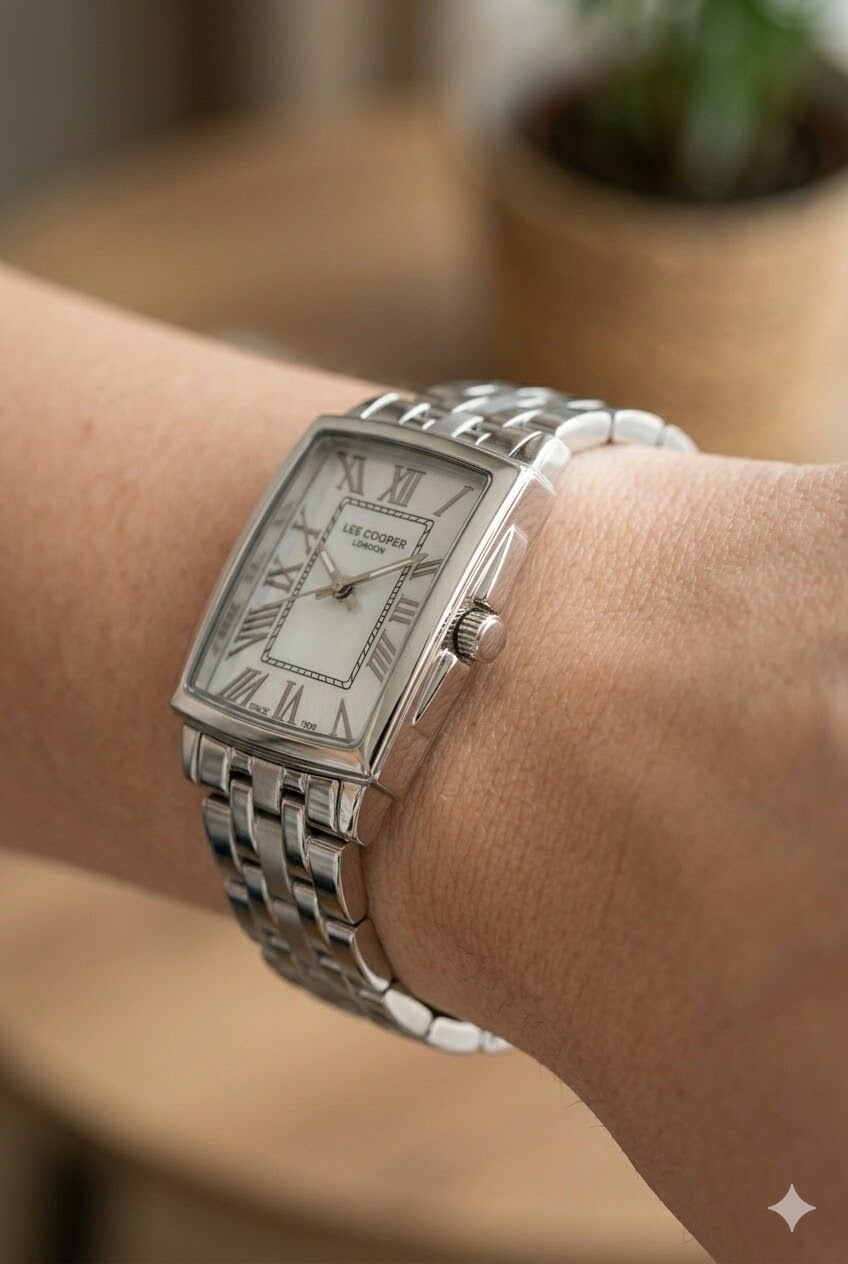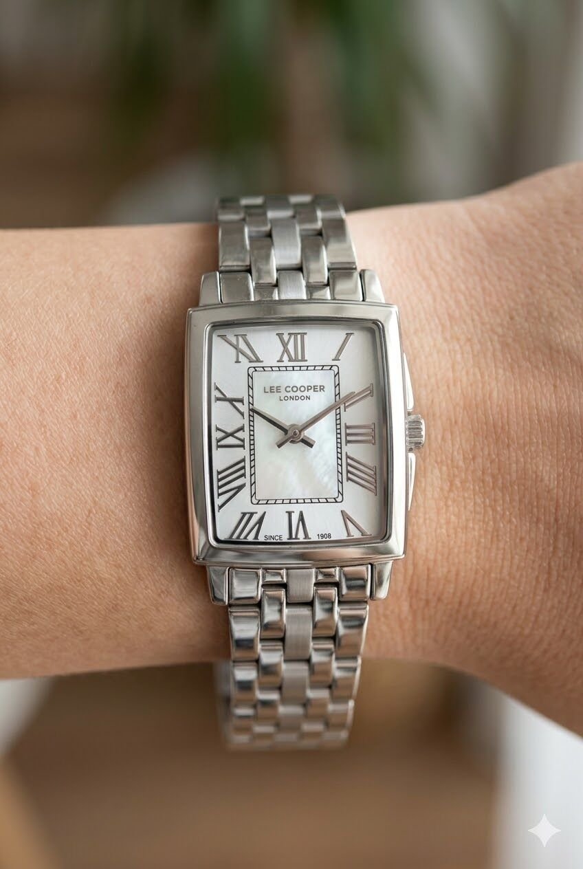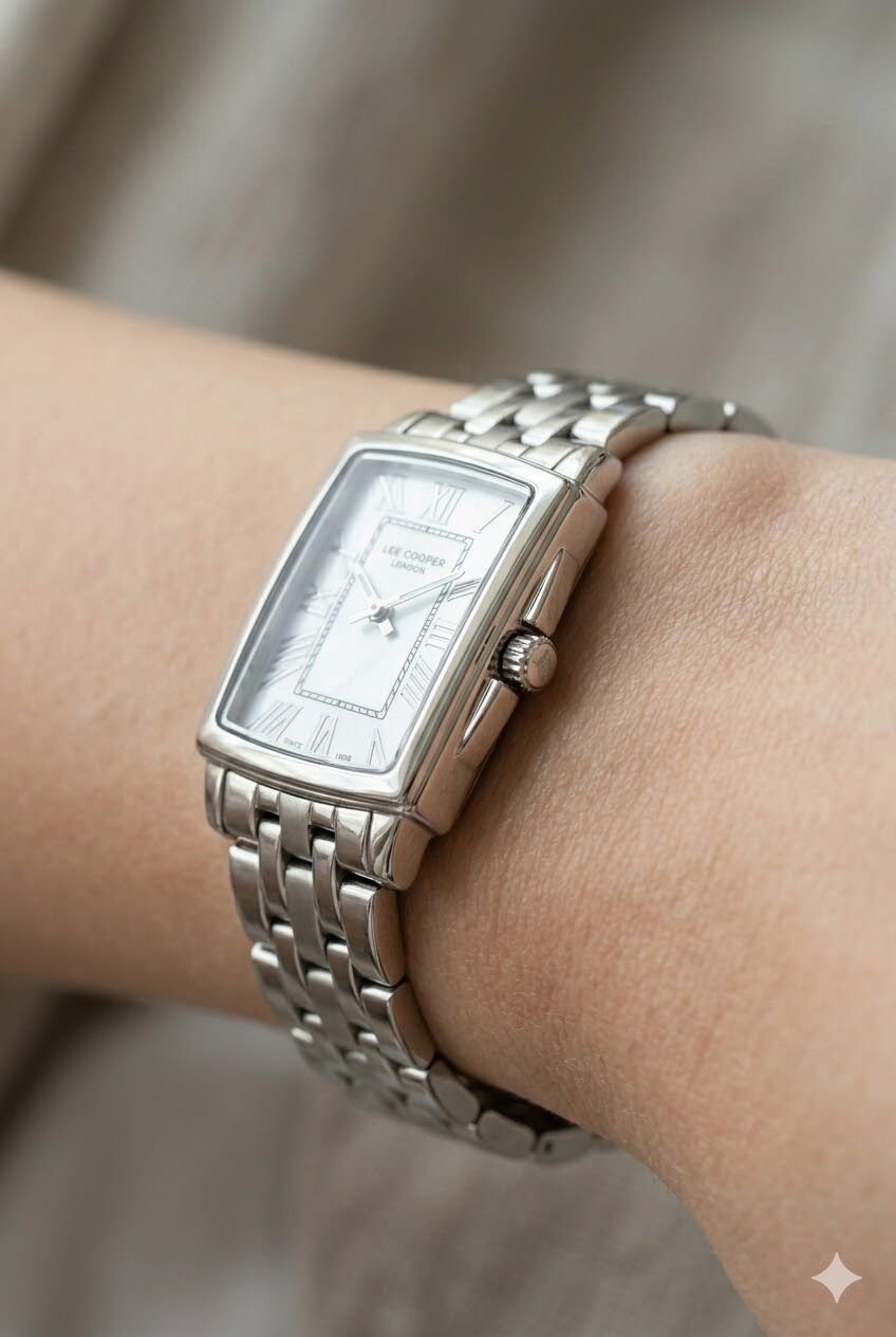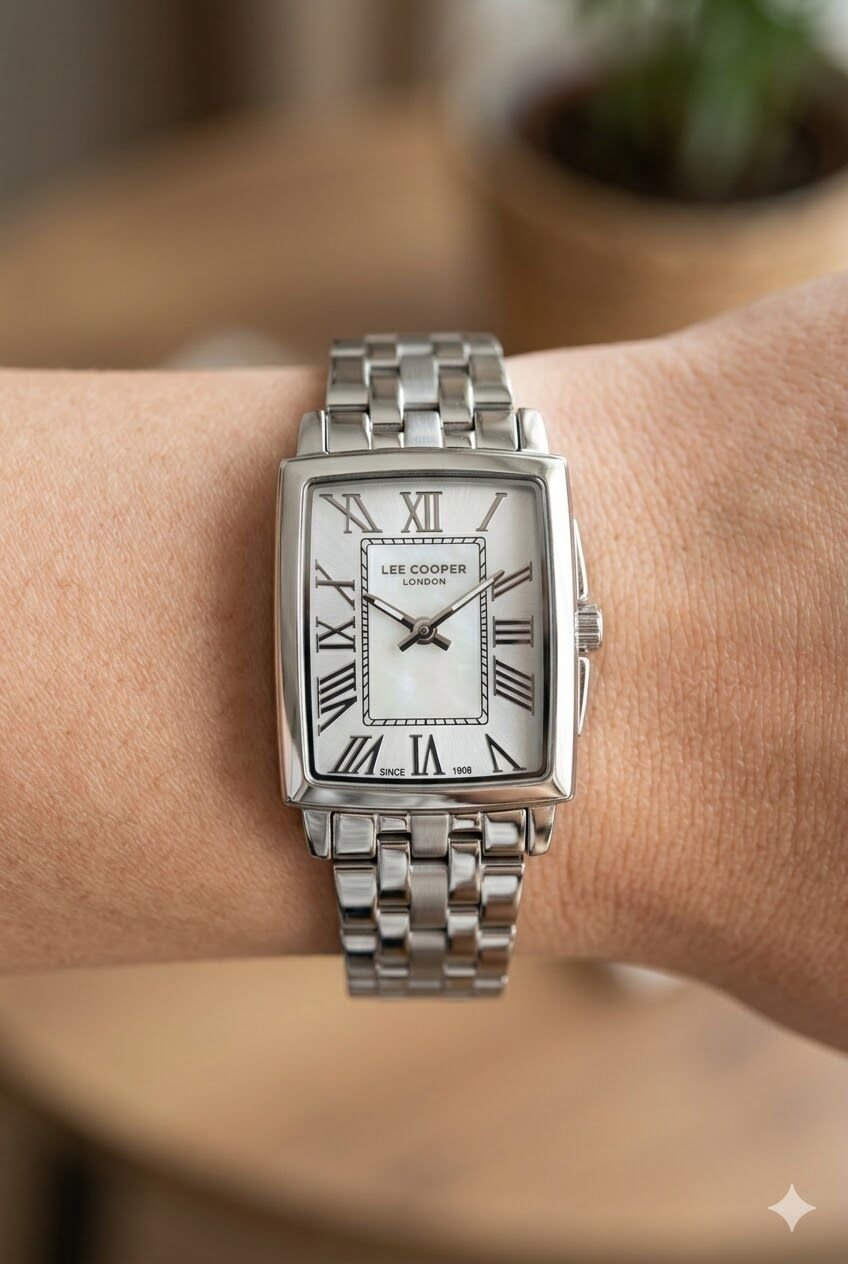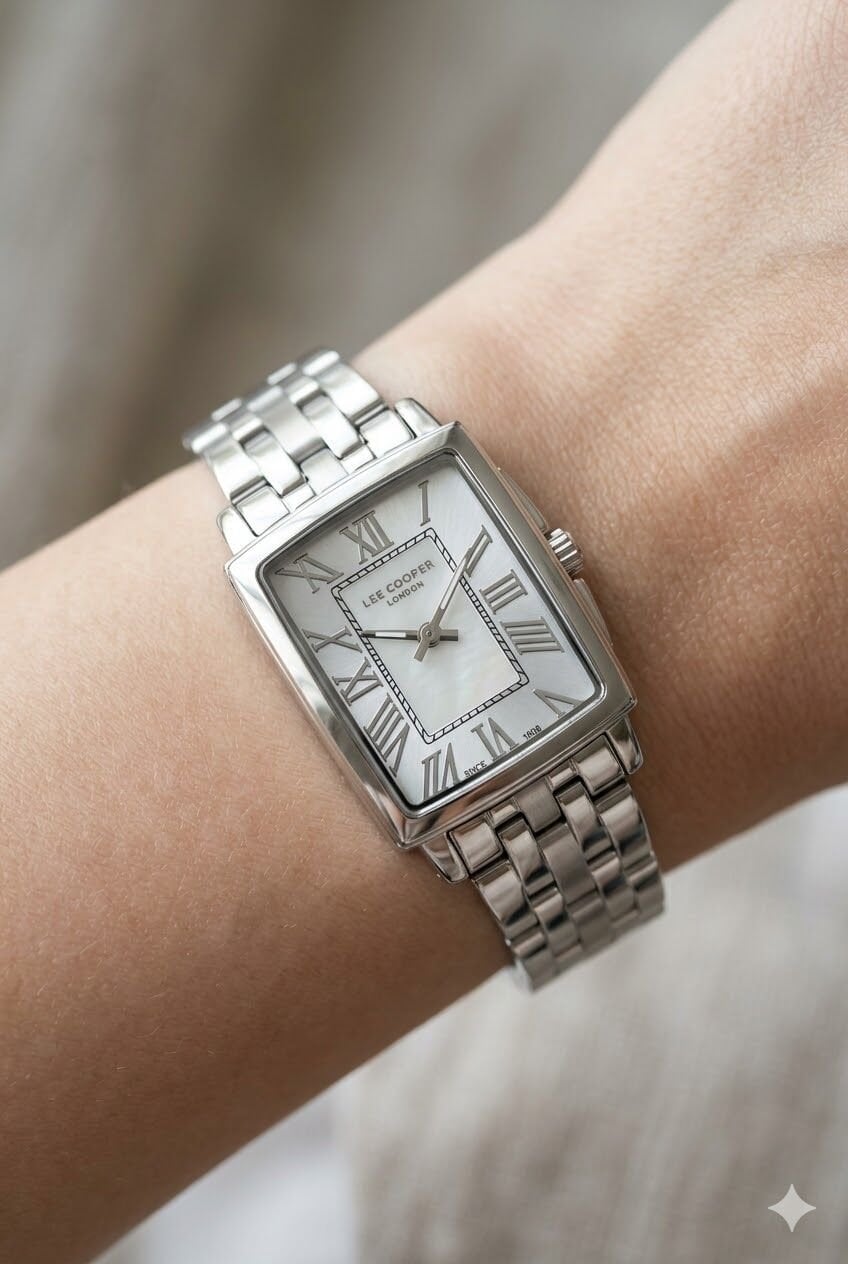 Lee Cooper kadın kol saati zarif tasarımı ve klasik detaylarıyla şıklığı ön plana çıkarır. Dikdörtgen kasa formu ve tamamı gümüş tonlardan oluşan tasarımı sayesinde sade, modern ve zamansız bir görünüm sunar. Lee Cooper kadın kol saati arayanlar için hem günlük kullanımda hem de özel günlerde tercih edilebilecek şık ve zarif bir seçenektir.
