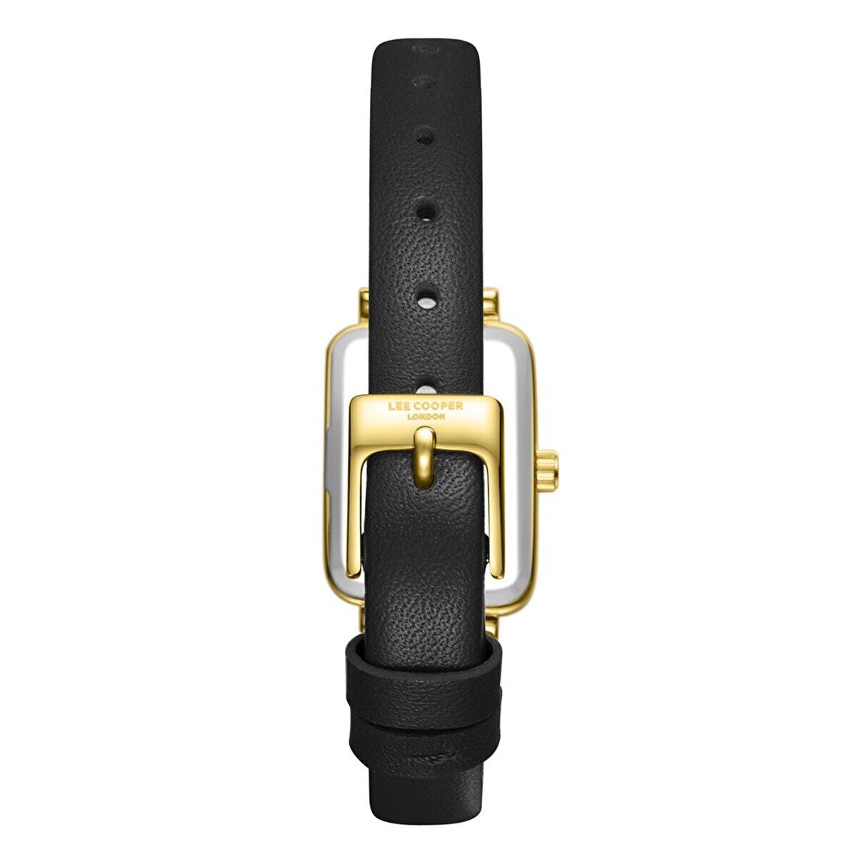 Lee Cooper Kadın Kol Saati | Zarif Tasarım, Dikdörtgen Altın Renk Kasa, Siyah Deri Kordon