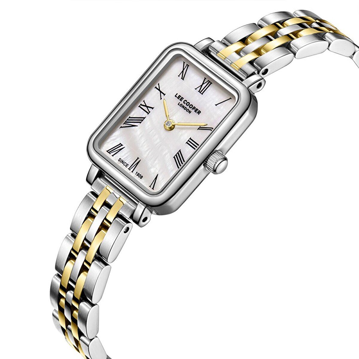 Lee Cooper LC08232.220 Kadın Kol Saati – Şık Dikdörtgen Kasa, Metal Bilezik, Silver/Gold