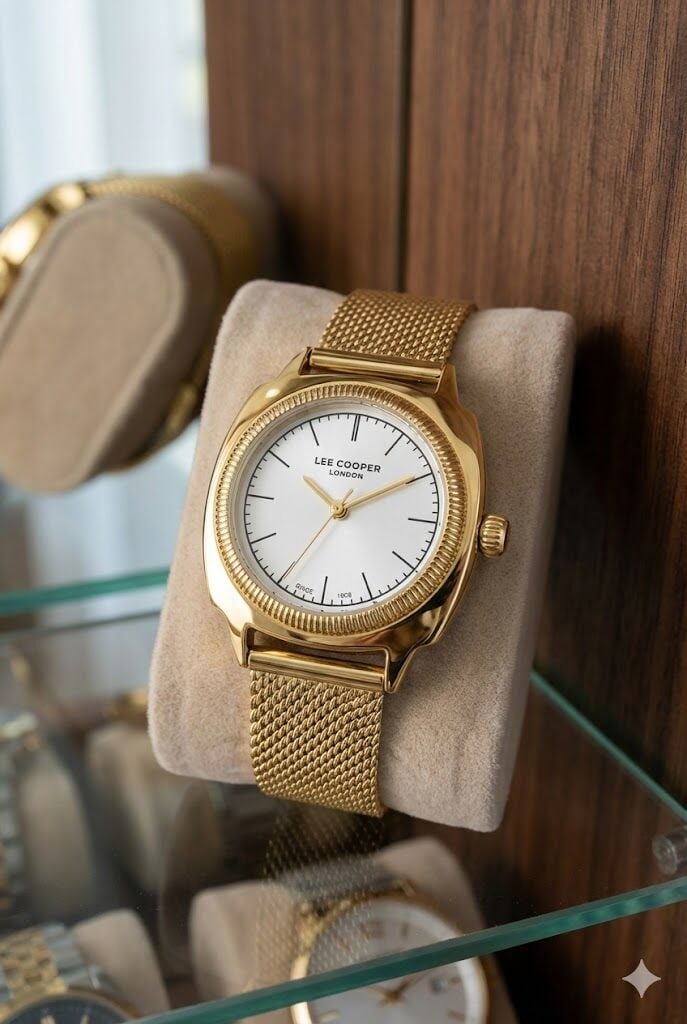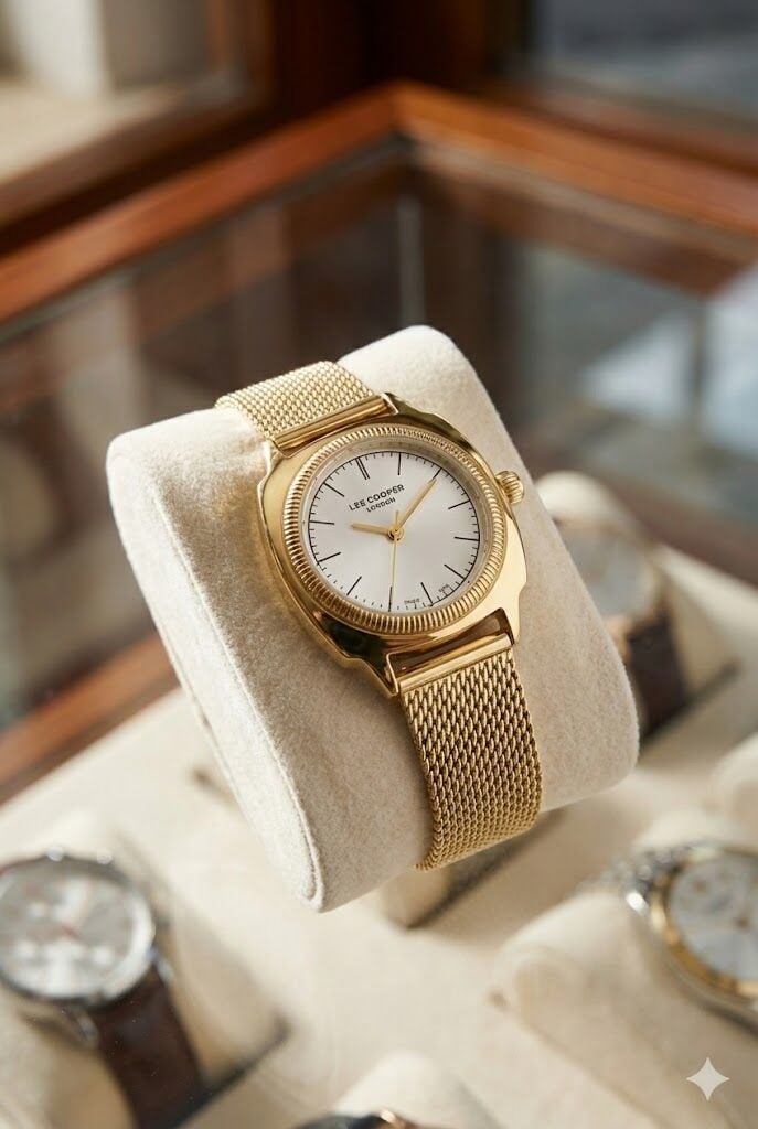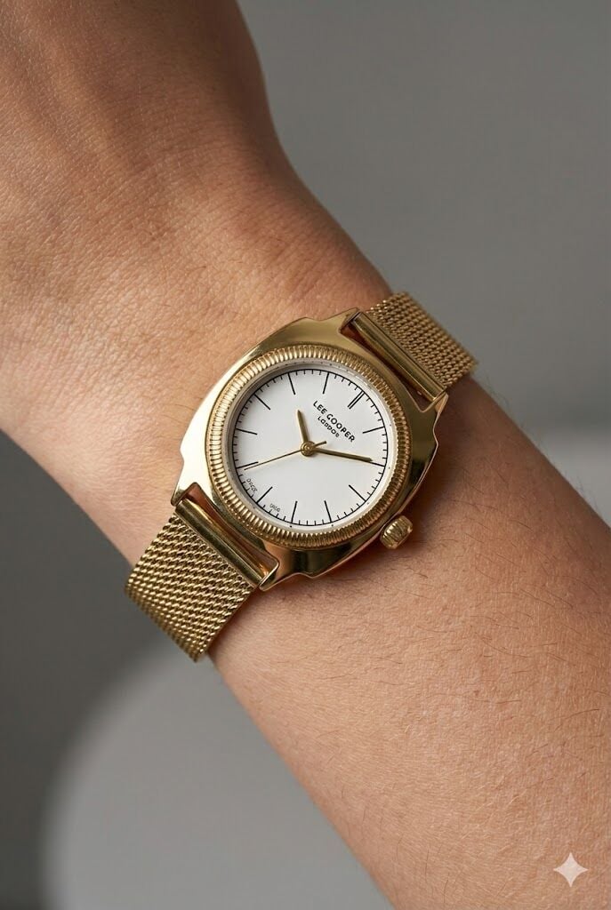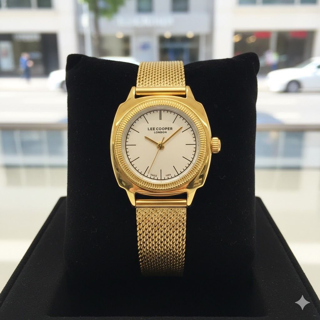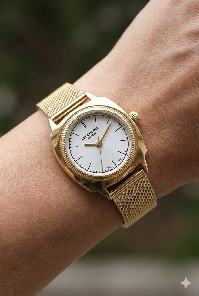 Lee Cooper Modern ve Şık Kadın Kol Saati | Altın Renk Paslanmaz Hasır Çelik Kordon, 27mm