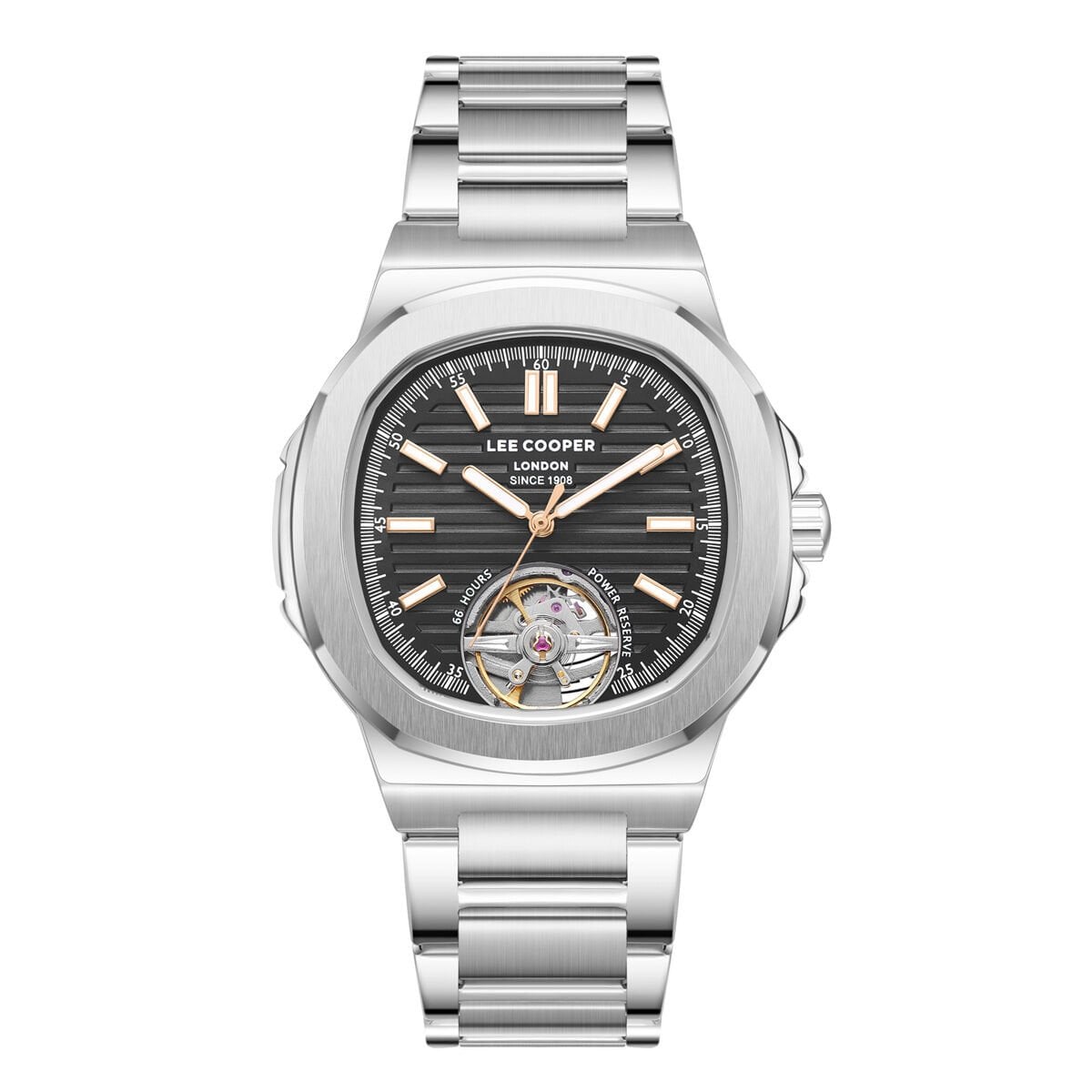 Lee Cooper Otomatik Mekanizma Erkek Kol Saati | 42 mm Çelik Kasa, Gümüş Çelik Kordon, Siyah Kadran