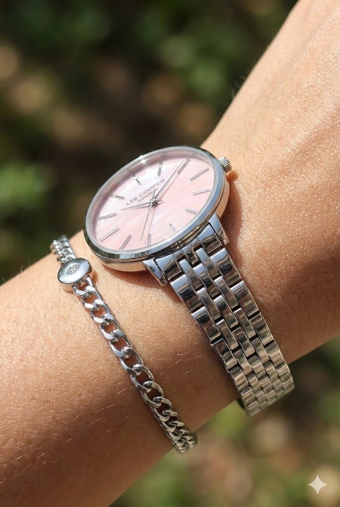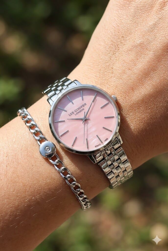 Lee Cooper kadın kol saati, zarif pembe kadranı ve modern çelik tasarımı ile şıklığı ve minimalizmi bir araya getirir. 34 mm kasa çapı sayesinde bilekte zarif ve dengeli bir görünüm sunar.