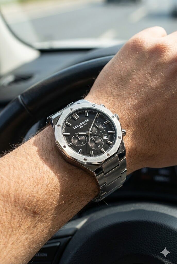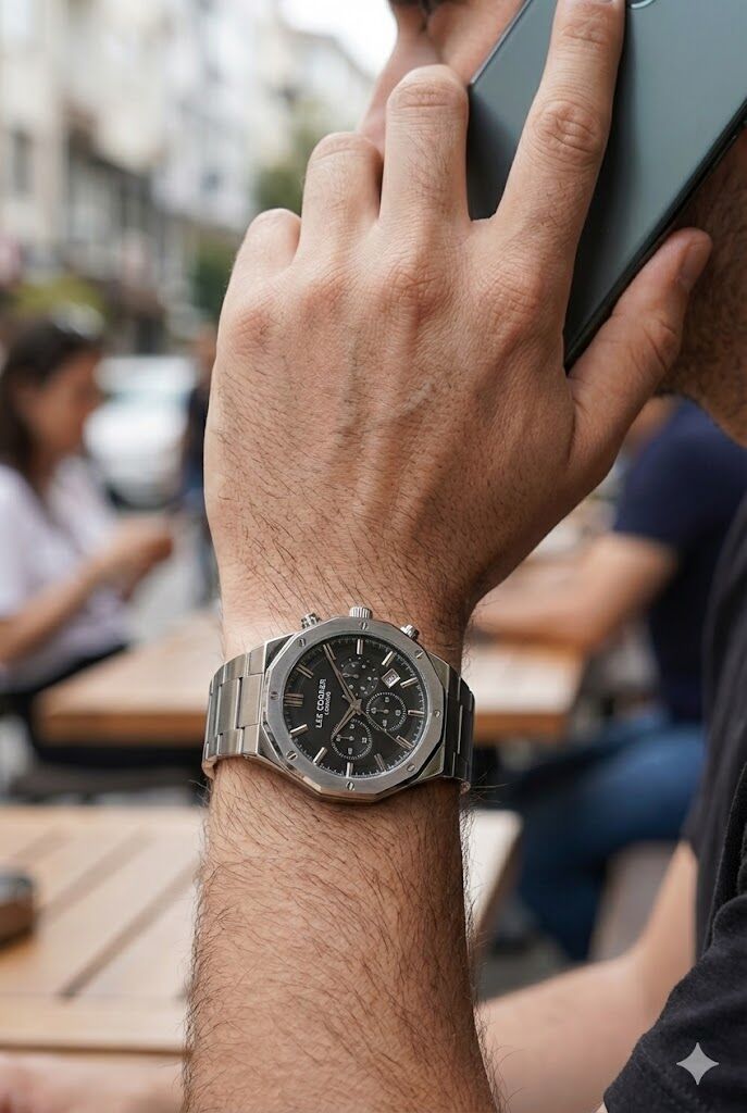 Lee Cooper erkek kol saati; sekizgen kasa formu, siyah kadranı ve güçlü çelik tasarımıyla modern ve prestijli bir stil sunar. Çok fonksiyonlu kadran yapısı hem estetik hem de pratik kullanım sağlarken, keskin hatlı kasa detayları saate karakter kazandırır. Günlük ve klasik kombinlerde fark yaratmak isteyen erkekler için şık ve güçlü bir tercihtir.