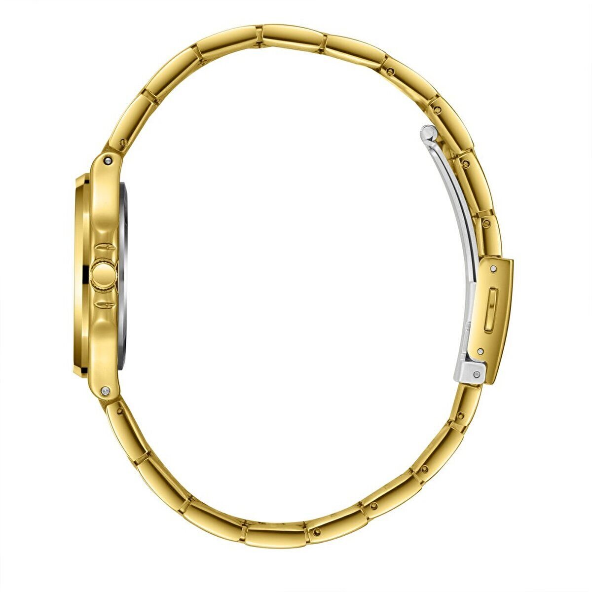 Yuvarlak kasa yapısı ve kabartmalı kadran dokusu ile zamansız bir şıklık sunar. Altın tonlar saatin klasik ve dikkat çekici görünümünü güçlendirir.