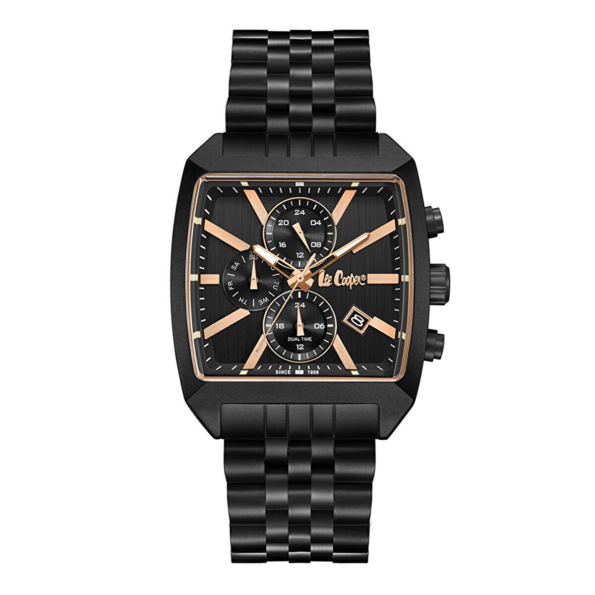 Lee Cooper Siyah Erkek Kol Saati | Kare Kasa Rose Detaylı, Çok Fonksiyonlu, Çelik Kordon