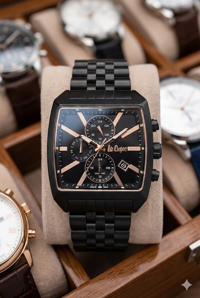 Lee Cooper erkek kol saati; kare kasa formu, siyah kadranı ve rose gold detaylarıyla modern ve prestijli bir stil sunar. Çok fonksiyonlu kadran yapısı, şıklığı fonksiyonellikle birleştirirken çelik kordonu saatin güçlü duruşunu tamamlar. Hem klasik hem de şehirli kombinlerde fark yaratmak isteyen erkekler için ideal bir tercihtir.