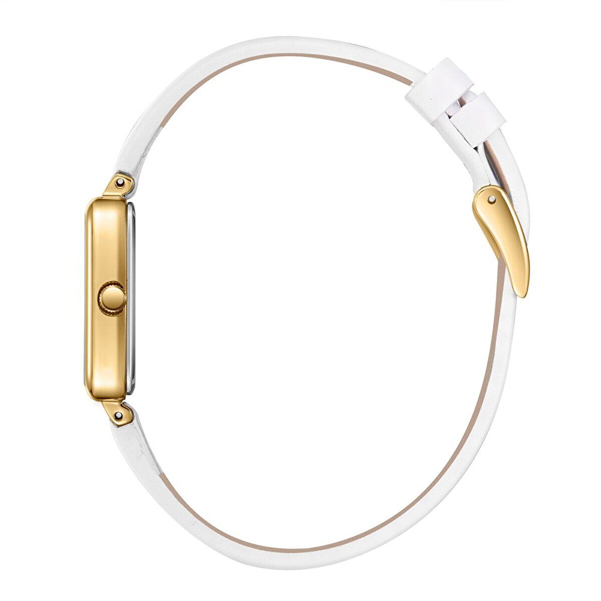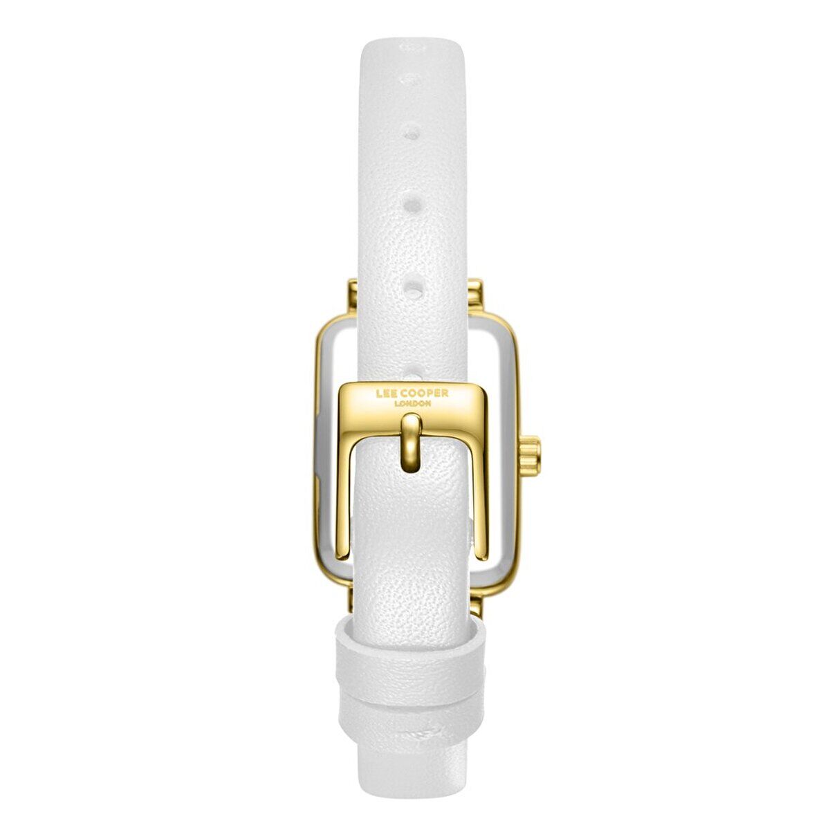 Lee Cooper Zarif Tasarım Kadın Kol Saati | 20mm Dikdörtgen Altın Renk Kasa, Beyaz Deri Kordon