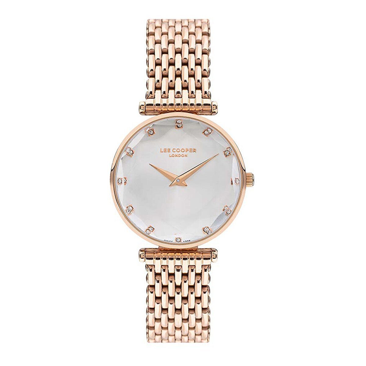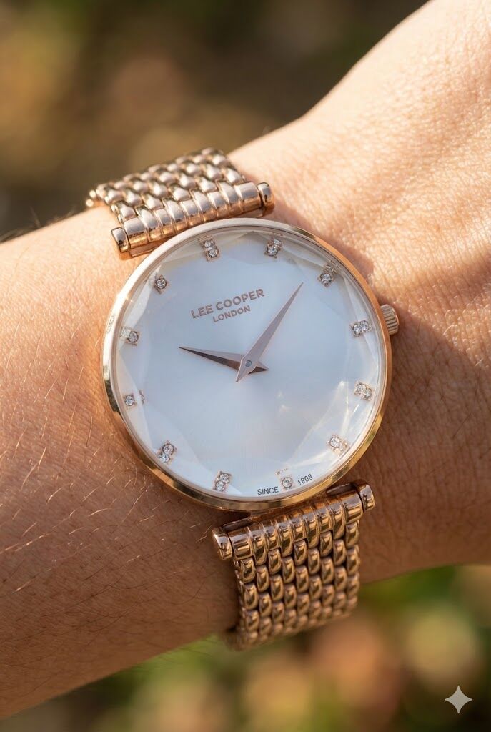 Lee Cooper kadın kol saati, rose gold tonlarının zarafeti ve minimalist tasarımı ile modern ve şık bir görünüm sunar. 33 mm kasa çapı sayesinde bilekte estetik ve dengeli bir duruş sağlar.