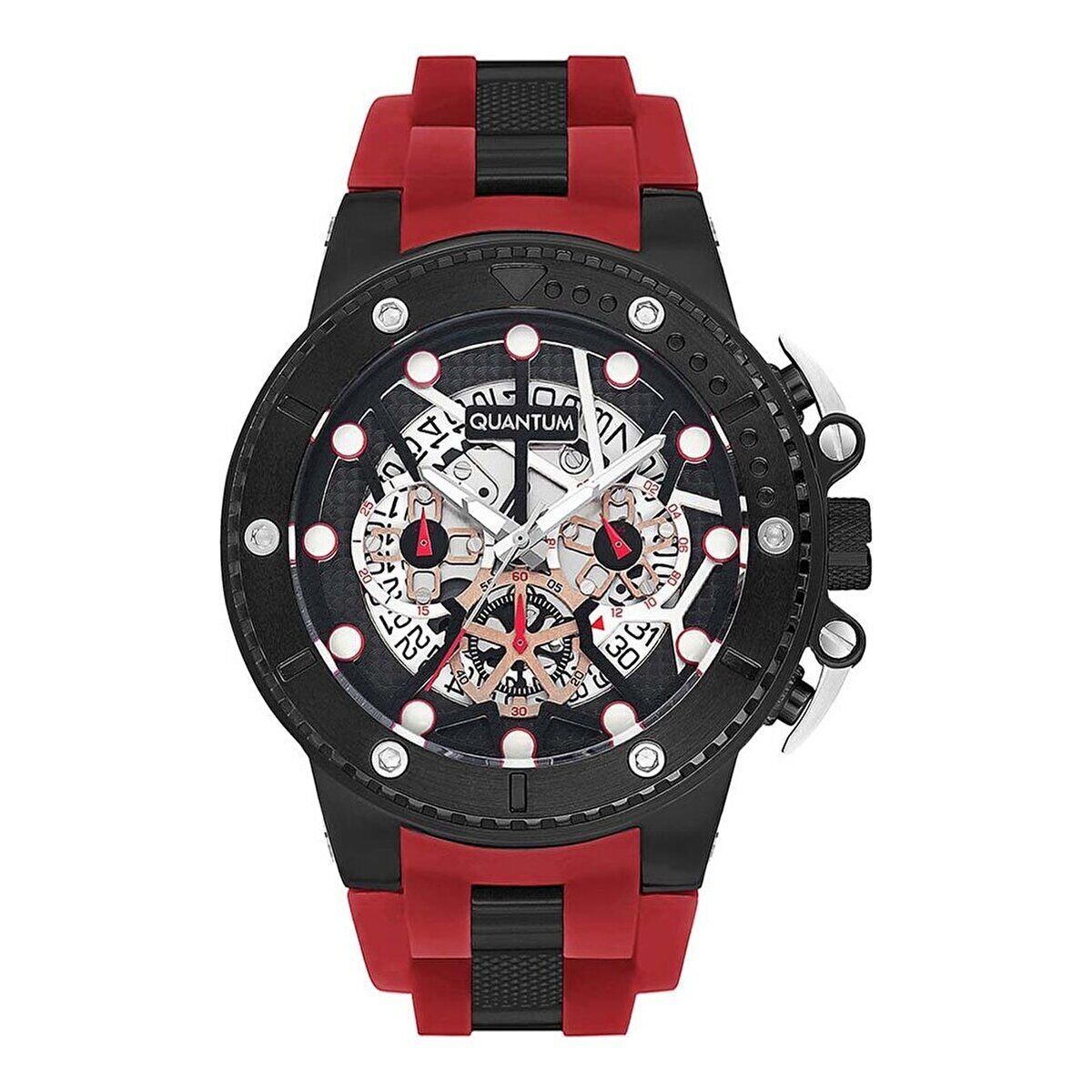 Quantum 50mm, Kronograf Erkek Kol Saati | Safir Cam, Kırmızı Silikon Kordon, 10ATM