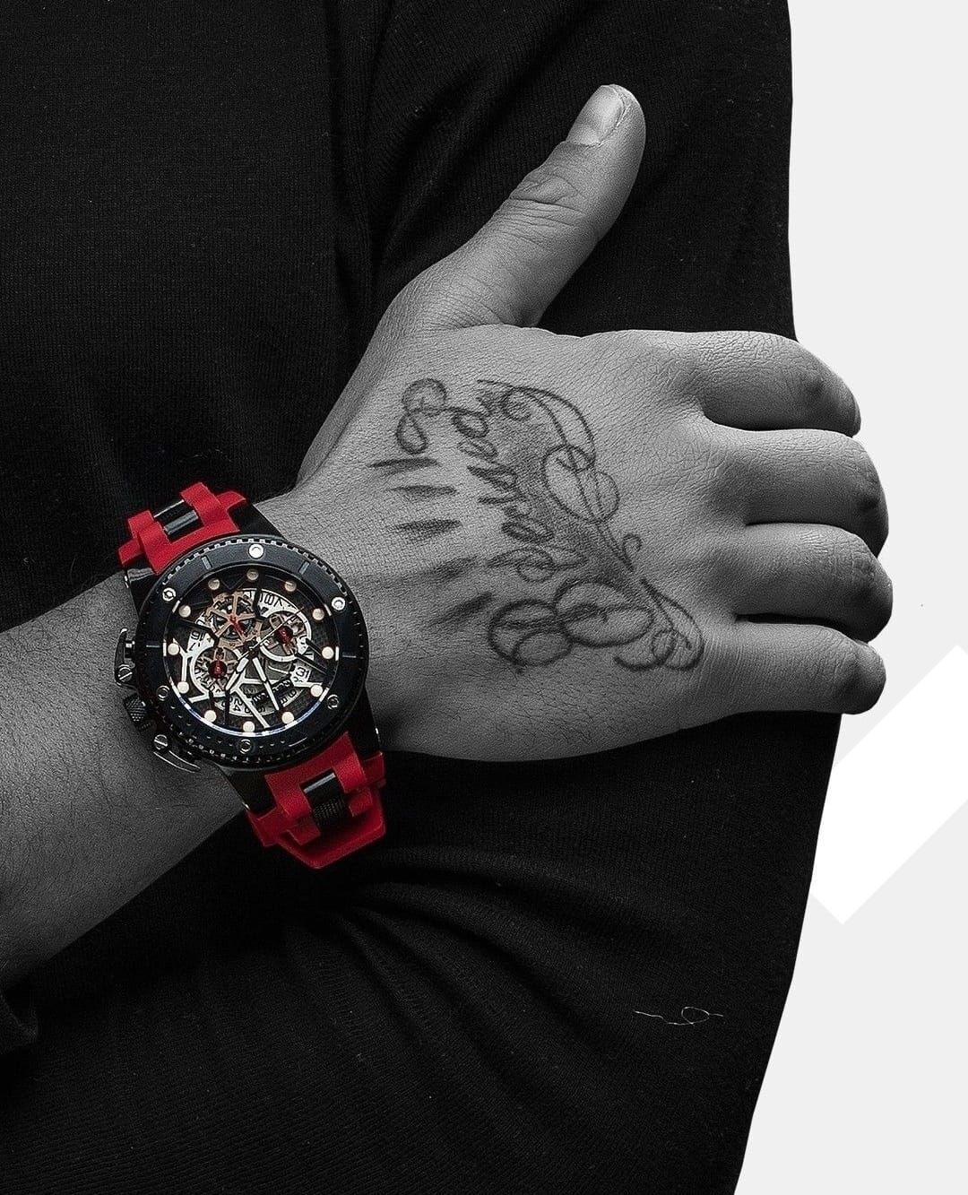 İskelet detaylı kadranı, kontrast renk geçişleri ve büyük kasa yapısı ile bilekte güçlü bir duruş sergiler. Spor kombinler ve casual stil için ideal bir tercihtir.