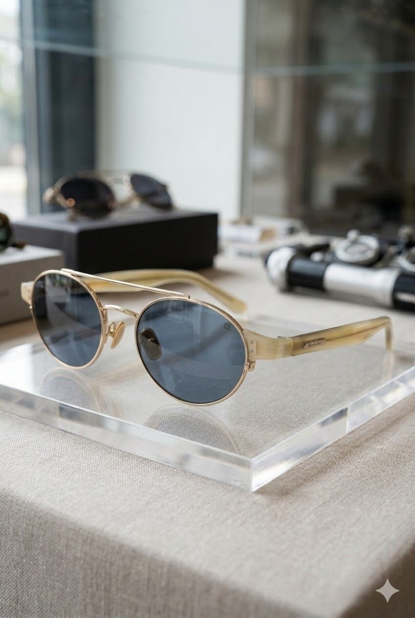 Geometrik formu ve altın çerçeve detayı ile stilinizi tamamlayan modern bir görünüm sunar.