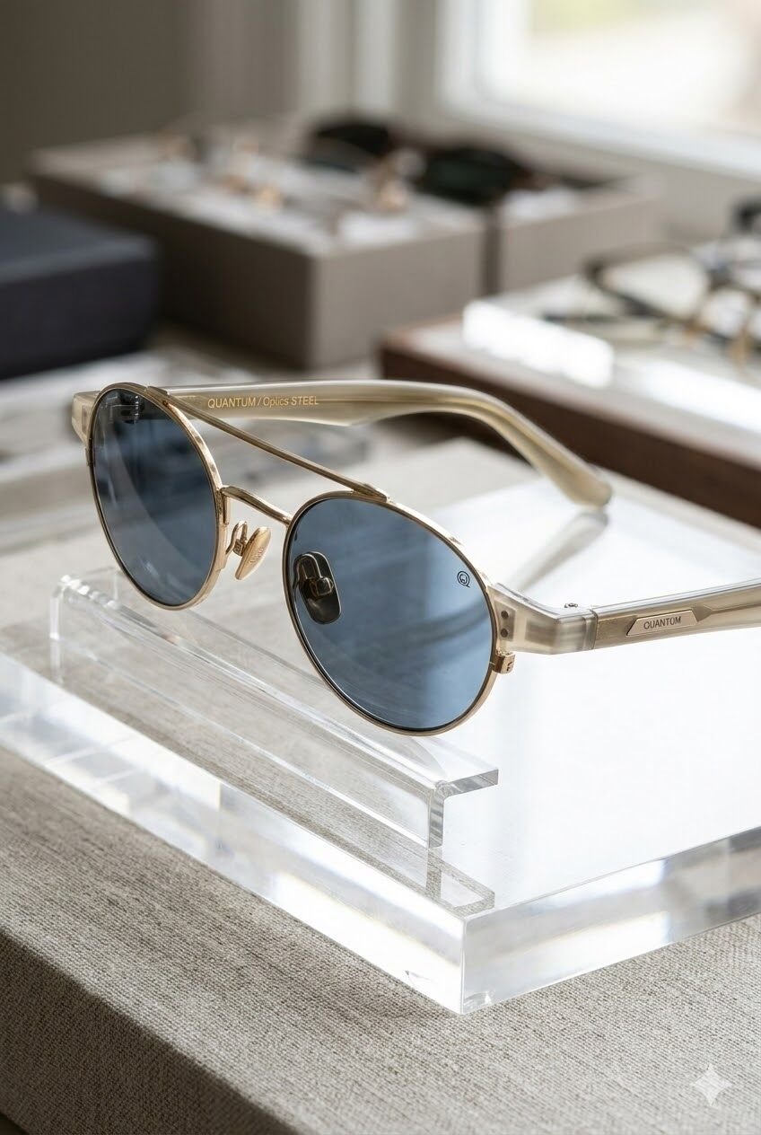 Quantum Altın Çerçeve Polarize Unisex Güneş Gözlüğü Mavi Cam 51 mm