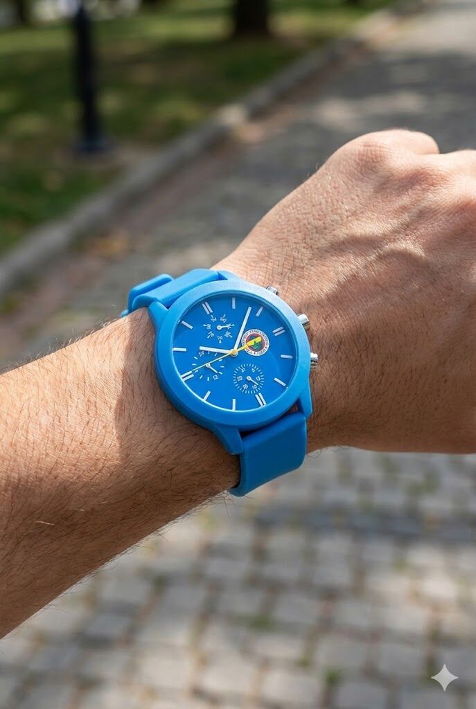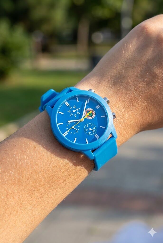 Kadran üzerinde yer alan Fenerbahçe logosu ve çok fonksiyonlu göstergeler, saate sportif ve kulüp ruhunu yansıtan bir karakter kazandırır. Canlı renk kullanımıyla enerjik bir görünüm sunar.