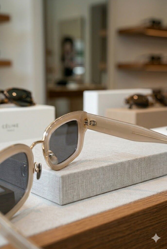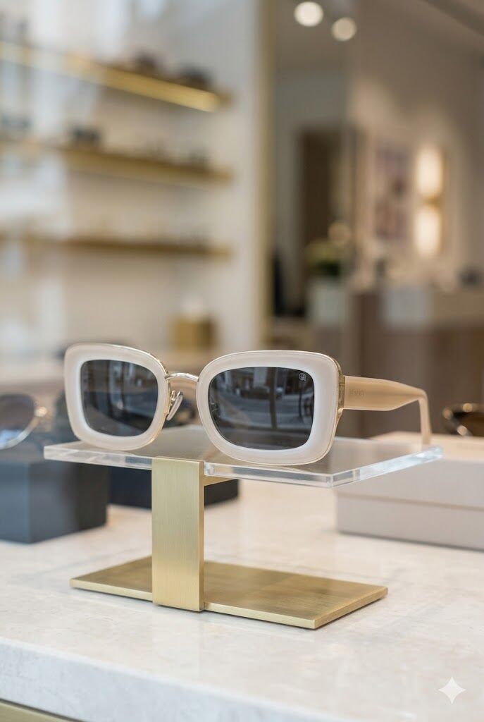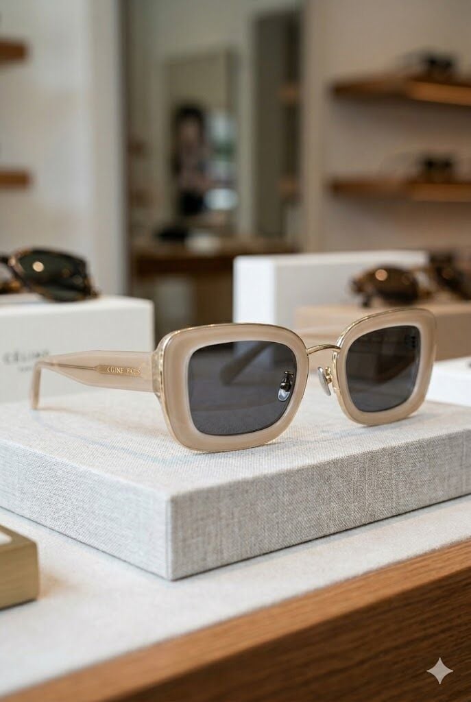 Krem çerçeve ve geometrik form ile trend ve sofistike bir görünüm sunar.